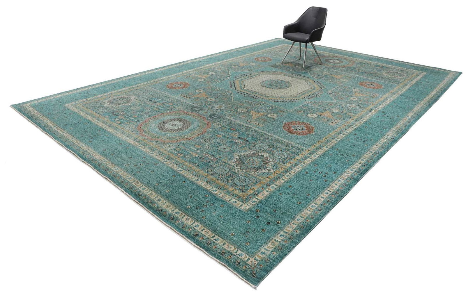 Mamluk Teppich | Knotendichte: ca. 300.000 Knoten/m² | Material: 100% Schurwolle (Flor) | Kette: 100% Baumwolle | Größe: 368 x 537 cm | Zustand: Handgeknüpft | Herkunft: Pakistan | Provenienz: Mamluk
