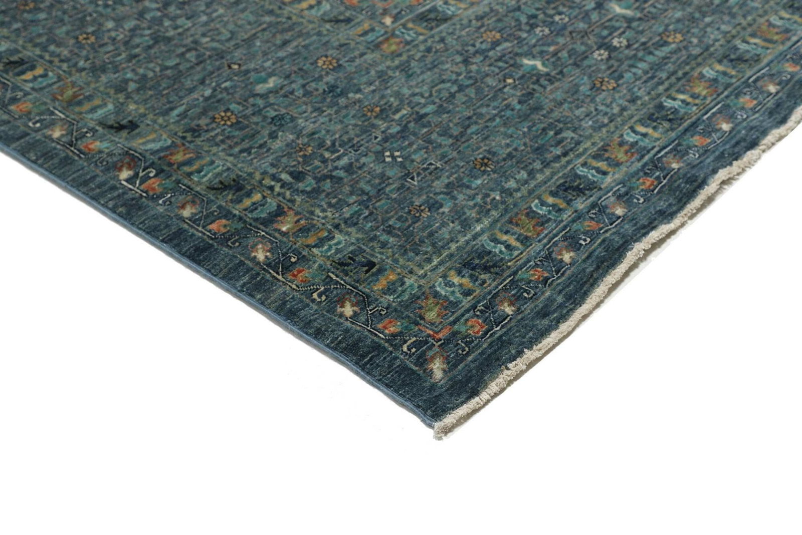 Der Teppich besteht aus hochwertiger Schurwolle, die nicht nur für ihre feinen Eigenschaften bekannt ist, sondern auch für ihre Langlebigkeit. Schurwolle ist von Natur aus schmutzabweisend und temperaturregulierend, was den Teppich besonders pflegeleicht macht. Die handgeknüpfte Technik sorgt dafür, dass die Fasern fest und dicht miteinander verbunden sind, was dem Teppich sowohl Robustheit als auch ein angenehmes Gefühl unter den Füßen verleiht.