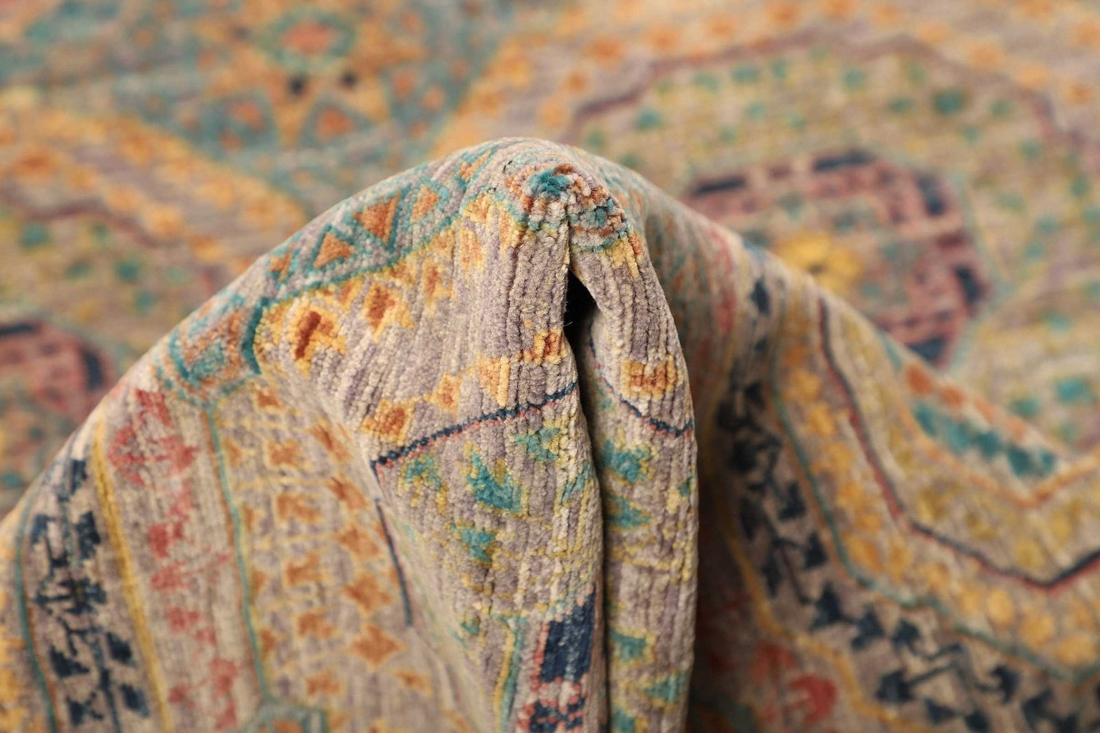 Die Verwendung von Schurwolle ist ein entscheidendes Merkmal dieses Mamluk Orientteppichs. Schurwolle gilt als eines der besten Materialien für die Teppichherstellung, da sie nicht nur weich und warm ist, sondern auch eine natürliche Widerstandsfähigkeit gegenüber Schmutz und Feuchtigkeit aufweist. Die handgeknüpfte Technik sorgt dafür, dass jeder Teppich ein Unikat ist, das mit viel Sorgfalt und Hingabe gefertigt wurde. Jedes Knotenelement trägt zur Knotendichte bei, die für die Qualität und Haltbarkeit des Teppichs entscheidend ist. Der hohe Fertigungsstandard garantiert zudem eine lange Lebensdauer, die über Generationen hinweg erhalten bleibt.