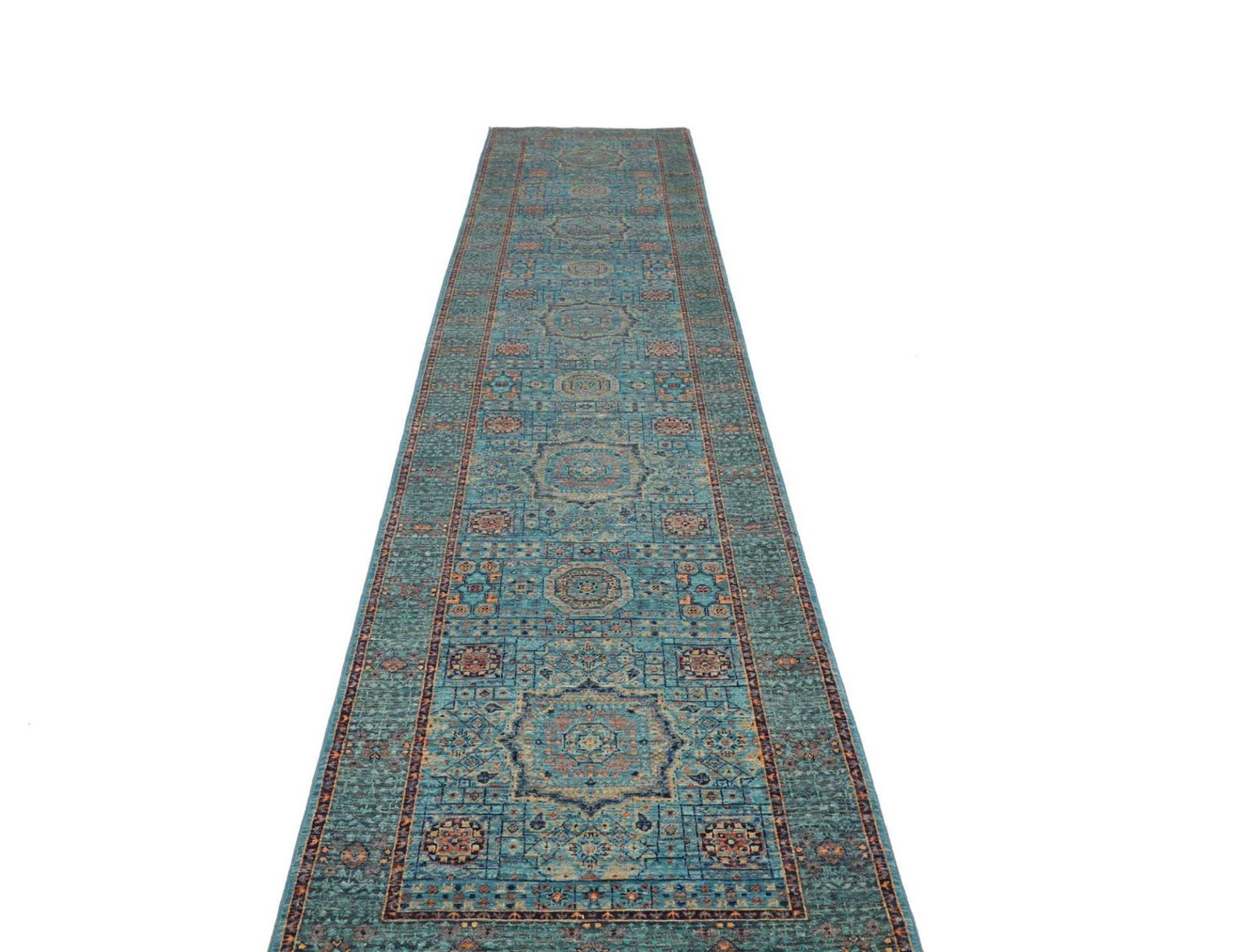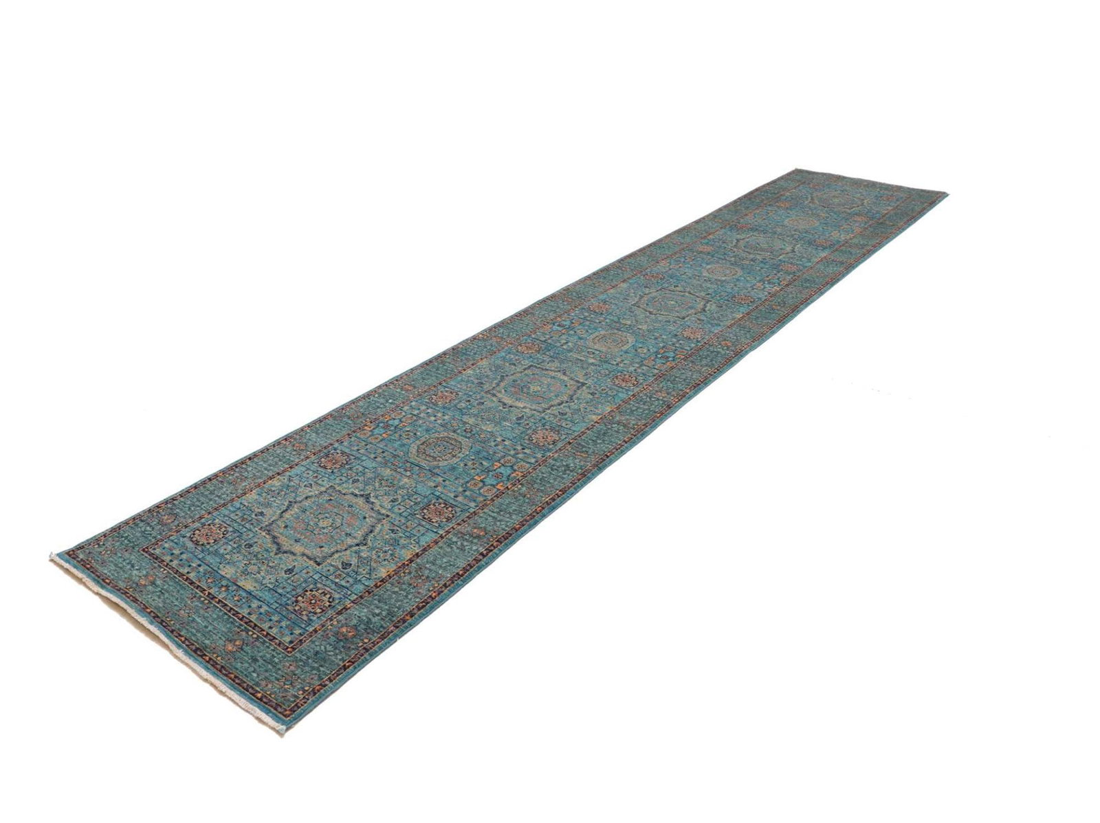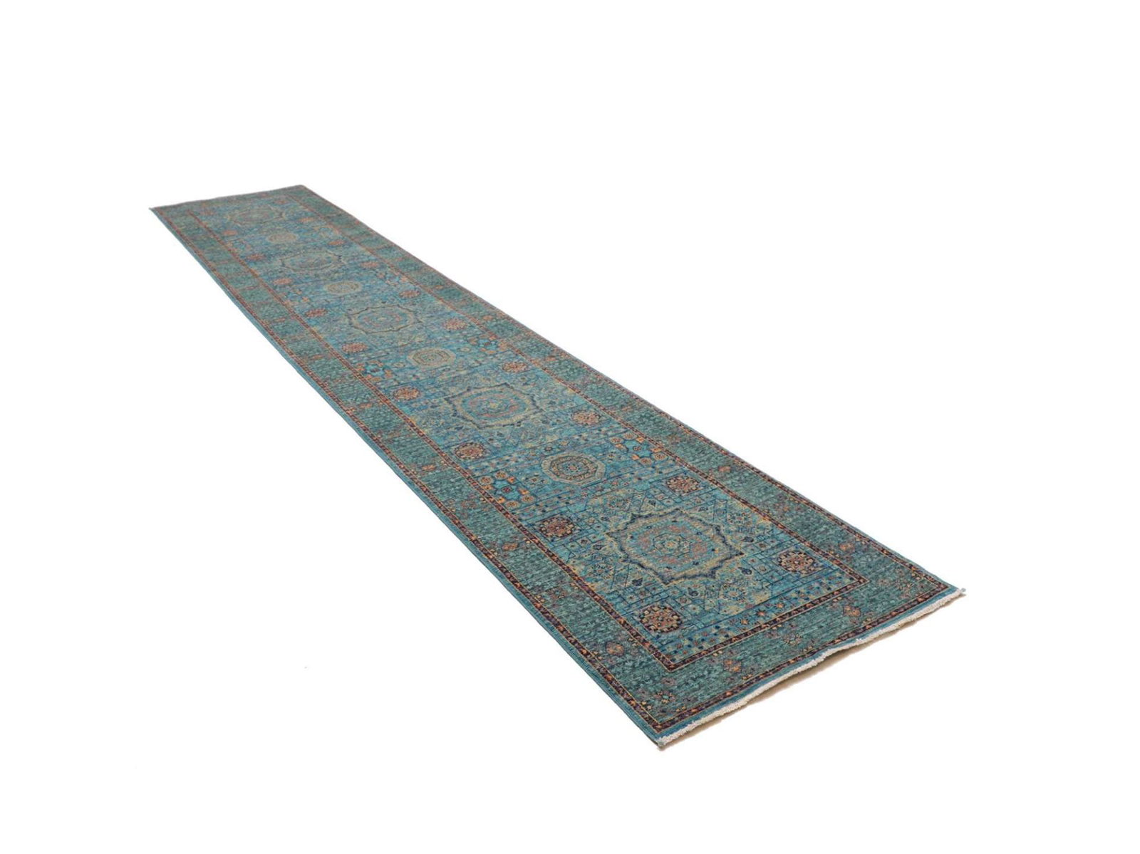 Mamluk Teppich | Knotendichte: ca. 300.000 Knoten/m² | Material: 100% Schurwolle | Größe: 86 x 394 cm | Kette: 100% Baumwolle | Herkunft: Pakistan | Zustand: Handgeknüpft, sehr hohe Qualität