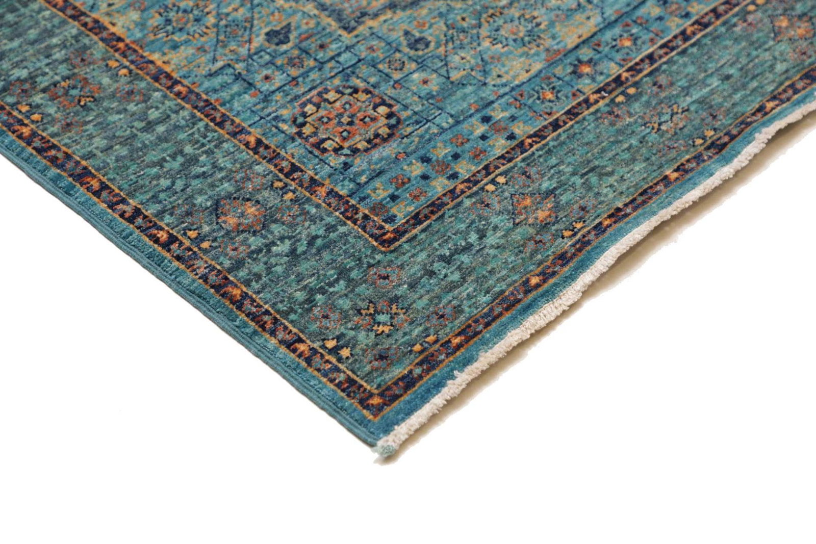 Die Verwendung von Seide und Wolle ist ein wesentliches Merkmal dieses Teppichs. Seide verleiht dem Teppich einen sanften Glanz und eine luxuriöse Textur, während Wolle bekannt für ihre Robustheit und Strapazierfähigkeit ist. Die Kombination beider Materialien sorgt dafür, dass dieser Mamluk Orientteppich sowohl für den täglichen Gebrauch geeignet ist als auch ästhetisch ansprechend bleibt. Die handgeknüpfte Technik gewährleistet, dass jedes einzelne Stück mit höchster Sorgfalt gefertigt wurde, verbunden mit einem innovativen Design, das sowohl Tradition als auch modernem Geschmack gerecht wird.