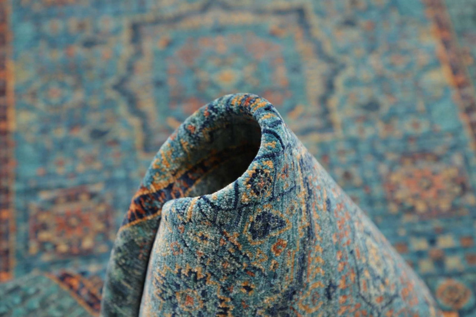 Der Mamluk Orientteppich ist ein herausragendes Beispiel für die exquisite Handwerkskunst, die in den traditionellen Teppichmanufakturen des Mittleren Ostens praktiziert wird. Dieser Teppich ist handgeknüpft und besteht aus einer hochwertigen Kombination von Seide und Wolle, die sowohl für ihre Langlebigkeit als auch für ihre luxuriöse Ausstrahlung bekannt sind. Seine imponierende Knotendichte zeugt von der hohen Qualität der Verarbeitung und der Detailgenauigkeit, die erforderlich ist, um solch ein Meisterwerk zu schaffen.