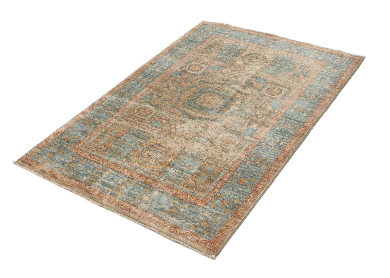 Mamluk-Teppich | Knotendichte: ca. 300.000 Knoten/m² | Material: 100% Schurwolle | Kette: 100% Baumwolle | Größe: 102 x 153 cm | Herkunft: Pakistan | Zustand: Handgeknüpft und hochwertig