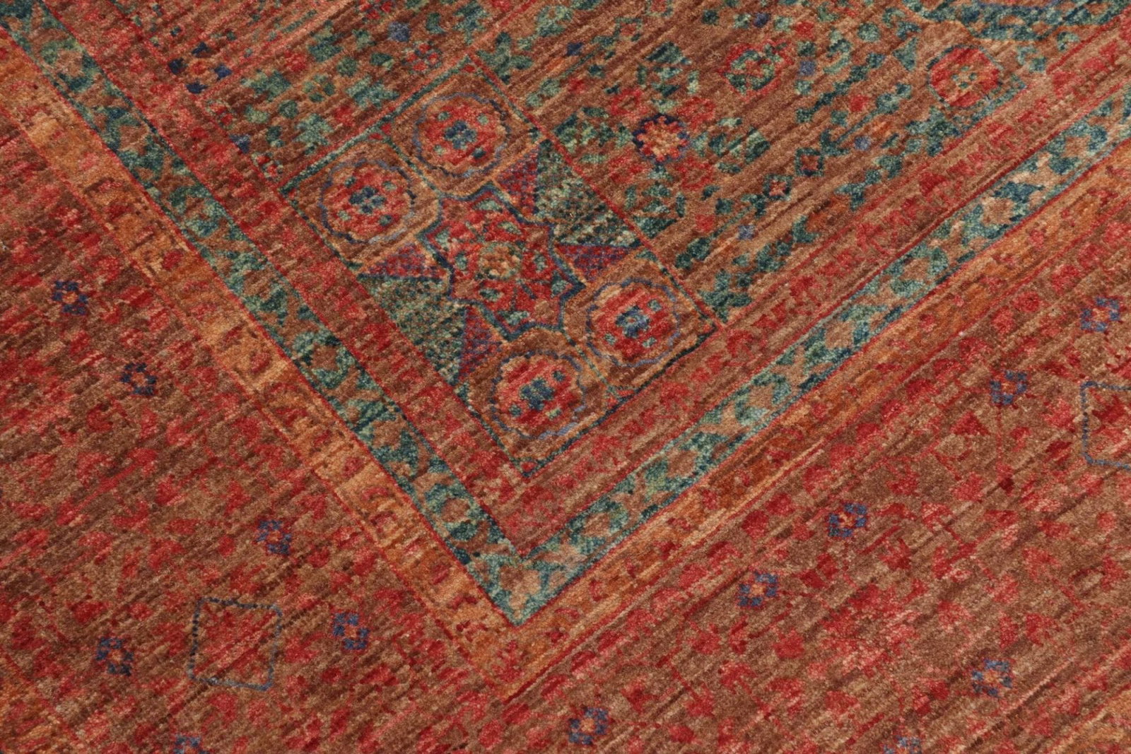 In Bezug auf die Knotendichte bietet dieser Teppich eine beeindruckende Struktur, die nur durch die traditionelle Handarbeit erreicht wird. Dies sorgt dafür, dass das Muster des Teppichs nicht nur lebendig und einladend ist, sondern auch außerordentlich langlebig. Die sorgfältige Verarbeitung und das feine Material machen diesen Teppich zu einem wertvollen Stück, das Generationen überdauern kann.
