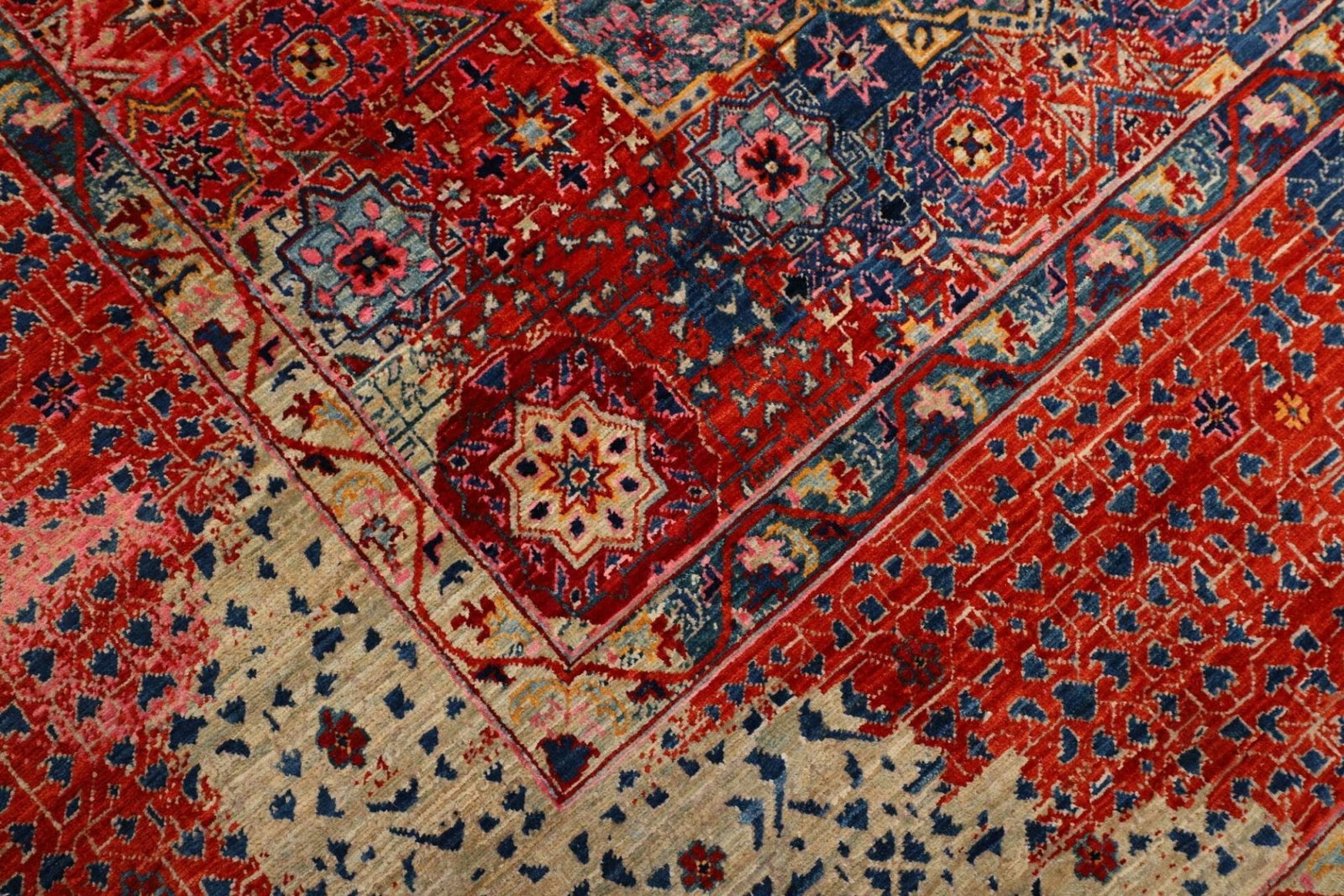 Die Muster spiegeln das kulturelle Erbe der damaligen Zeit wider und sind stark von der islamischen Kunst inspiriert. Oft finden sich in Mamluk Teppichen auch Elemente, die an die Architektur der Zeit erinnern, beispielsweise geometrische Formen und stilisierte Pflanzenmotive, welche die tief verwurzelte Beziehung zwischen Kunst und Natur verdeutlichen.