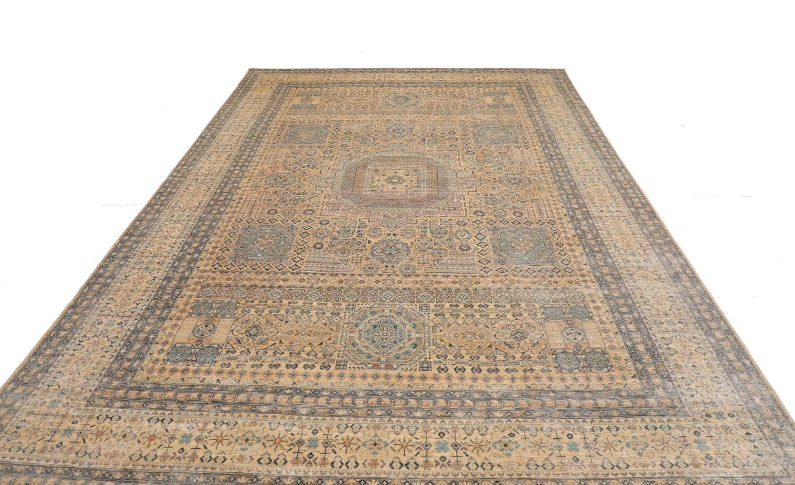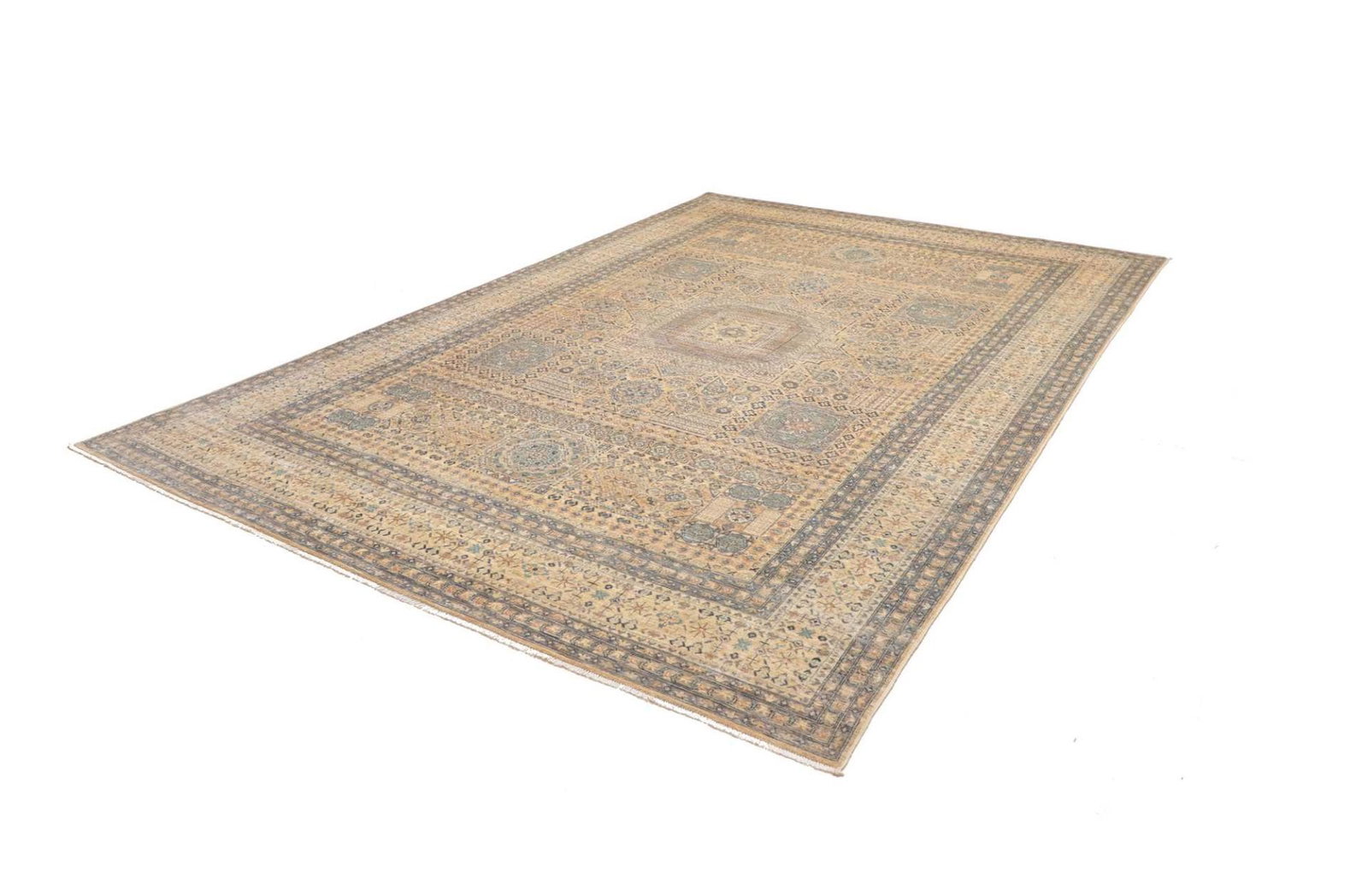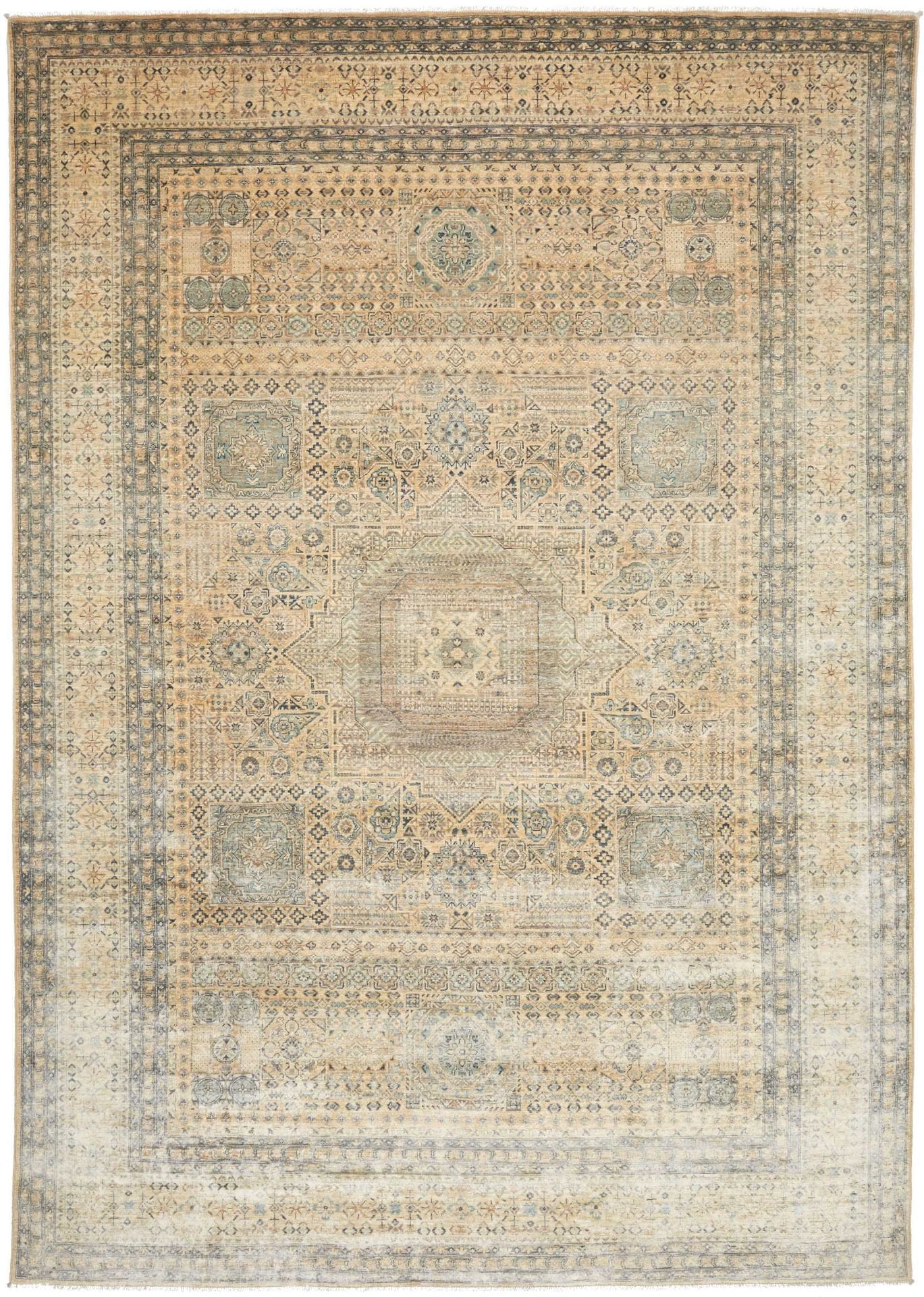 Mamluk Teppich | Knotendichte: ca. 300.000 Knoten/m² | Material: 100% Schurwolle (Flor), 100% Baumwolle (Kette) | Größe: 249 x 346 cm | Herkunft: Pakistan | Zustand: Handgeknüpft und in sehr gutem Zustand | Charakteristisches Mamluk-Medaillon im Zentrum
