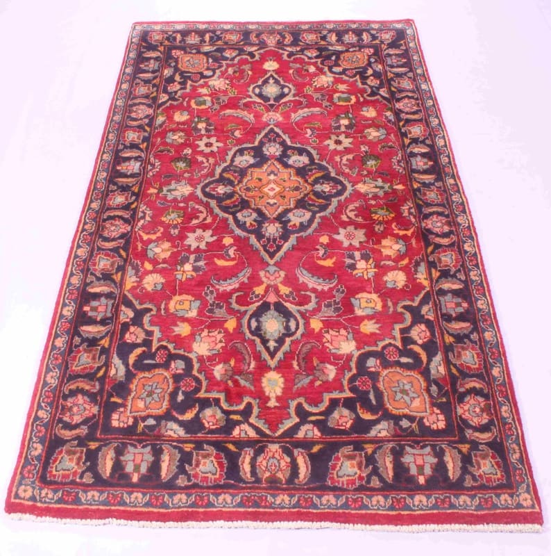 Maschhad Teppich 191×106 cm, rot-blau, handgeknüpft, Perserteppich