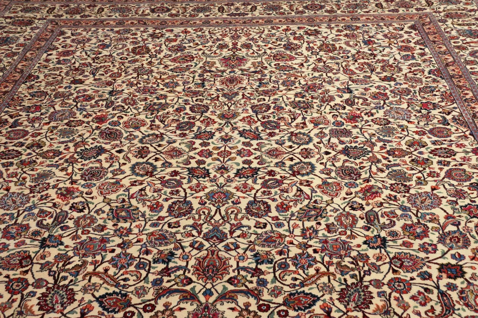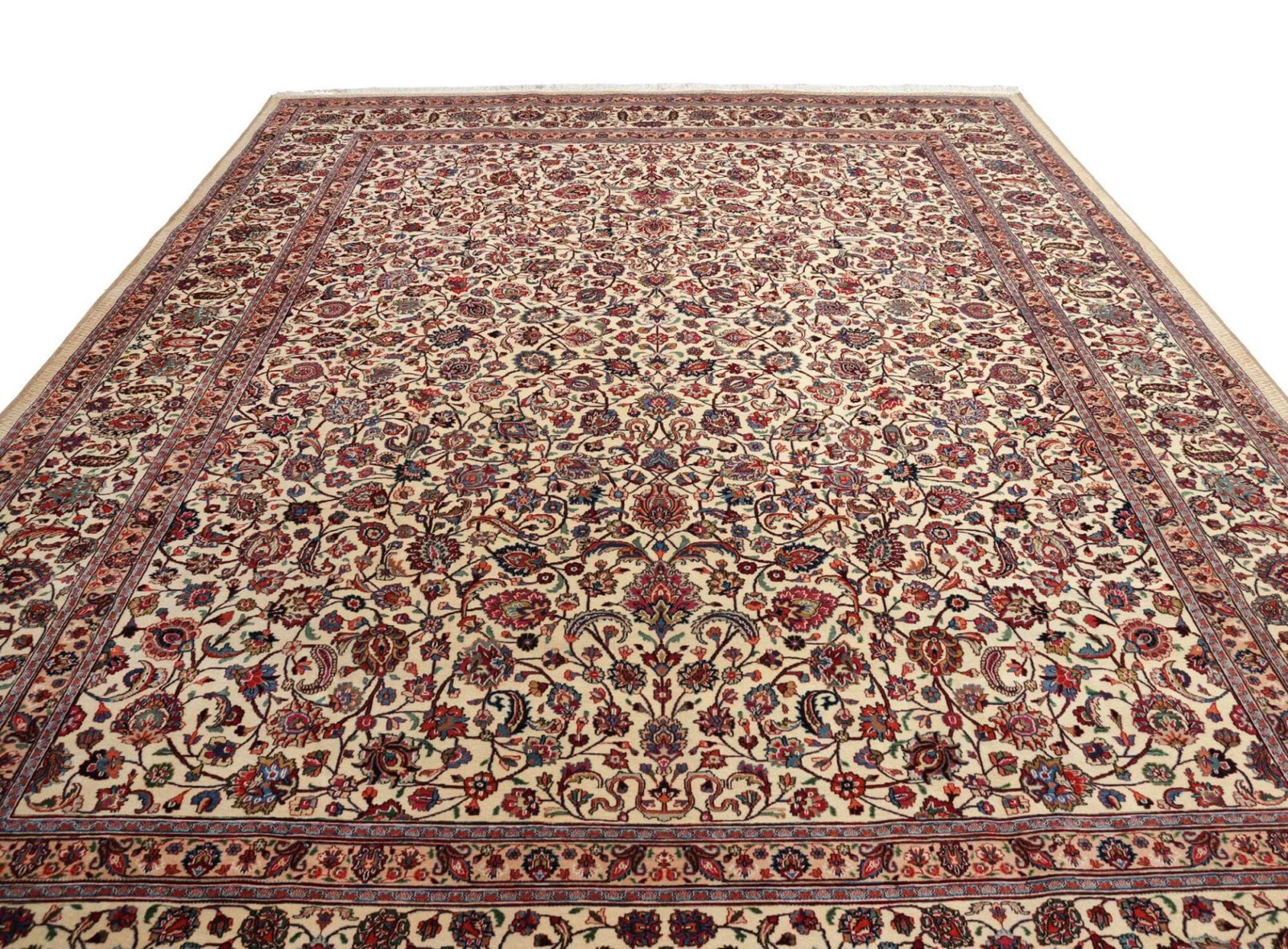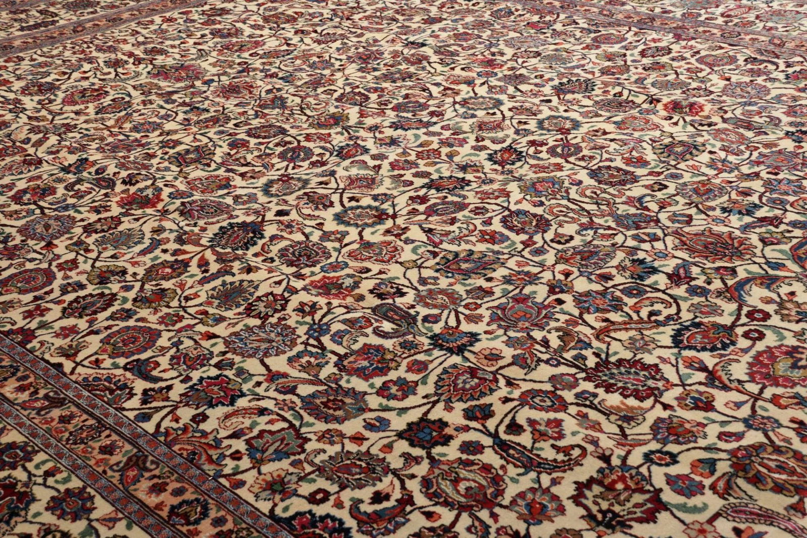 Mashad Teppich 303 x 403 cm, florales Muster, handgeknüpft, Perserteppich