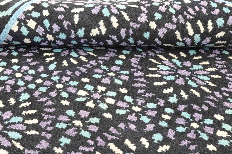 | Moderner Ikat-Teppich | Knotendichte: 90.000 Knoten/m² | Material: Wolle mit Baumwollkette | Größe: 235×167 cm | In neuem Zustand | Farbe: Schwarz/Grau | Verarbeitung: Handgeknüpft | Ursprung: Indien | Dicke: ca. 8 mm | Gewicht: ca. 8 kg