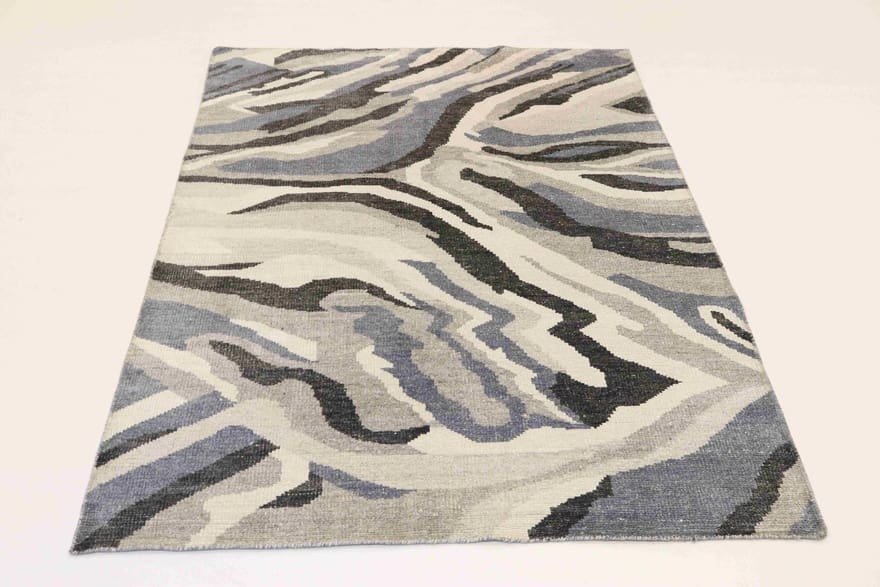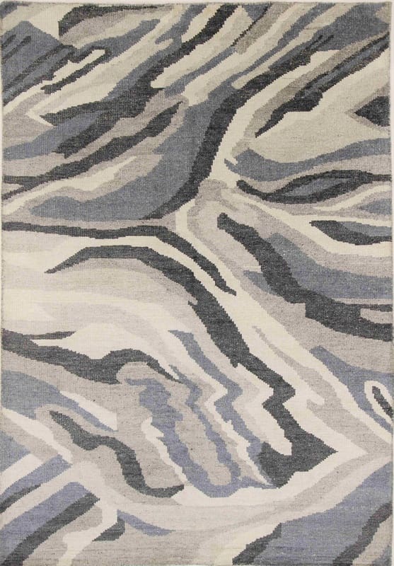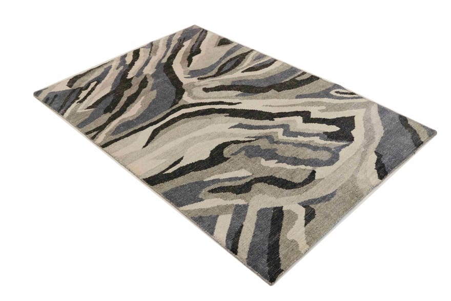 Moderne Ikat Teppich | Knotendichte: 90.000 Knoten/m² | Material: Wolle und Baumwolle | Größe: 239×167 cm | In neuem Zustand | Herkunft: Indien | Farbe: Schwarz/Grau | Handgeknüpft | Dicke: ca. 8 mm | Gewicht: ca. 8 kg