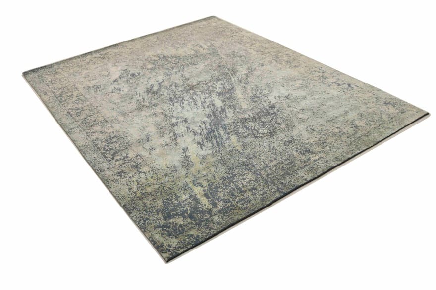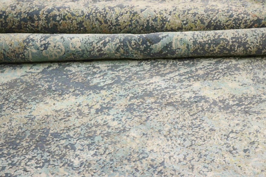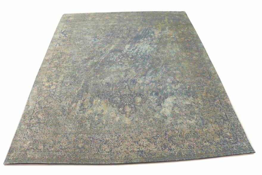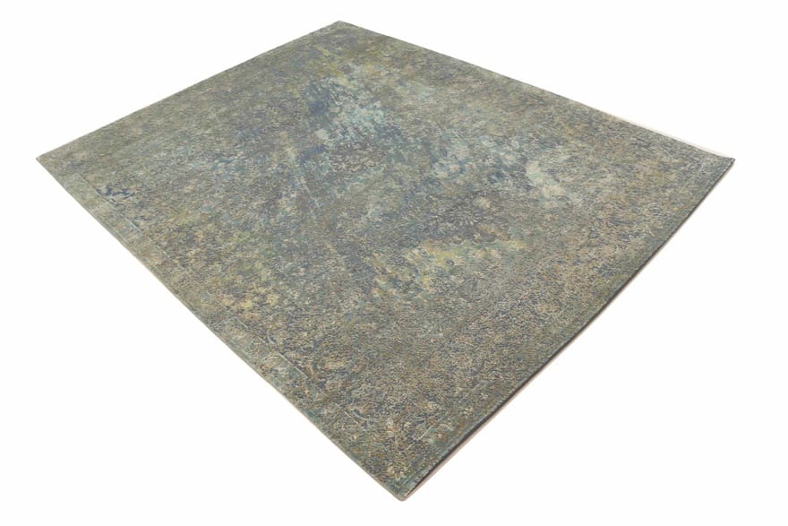 Handgeknüpfter Designer-Teppich | Knotendichte: 160.000 – 200.000 Knoten/m² | Material: Bambusseide und Baumwolle | Größe: 310×245 cm | Zustand: Neu | Ursprung: Indien | Farbe: Grün/Oliv | Dicke: ca. 8 mm | Gewicht: ca. 24 kg