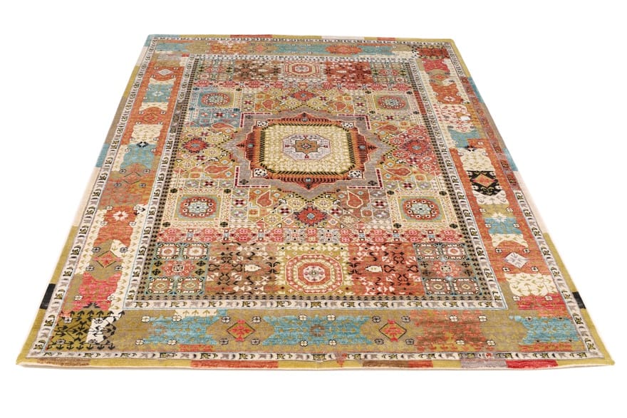 Modern LOTUS Teppich | Knotendichte: 200.000 – 250.000 Knoten/m² | Material: Wolle und Seide | Größe: 240×175 cm | In neuem Zustand | Verarbeitung: Handgeknüpft | Herkunft: Indien | Farbe: Multifarbe | Dicke: ca. 10 mm | Gewicht: ca. 16 kg
