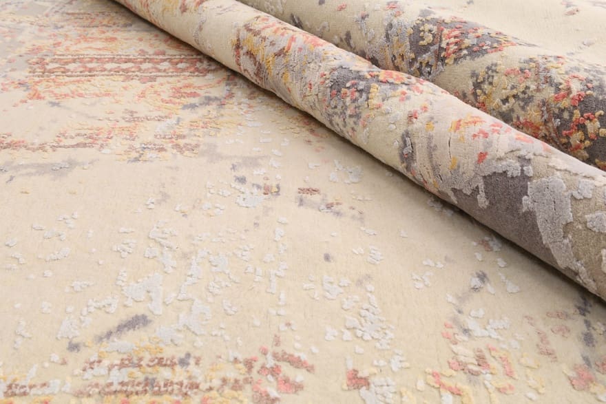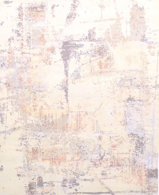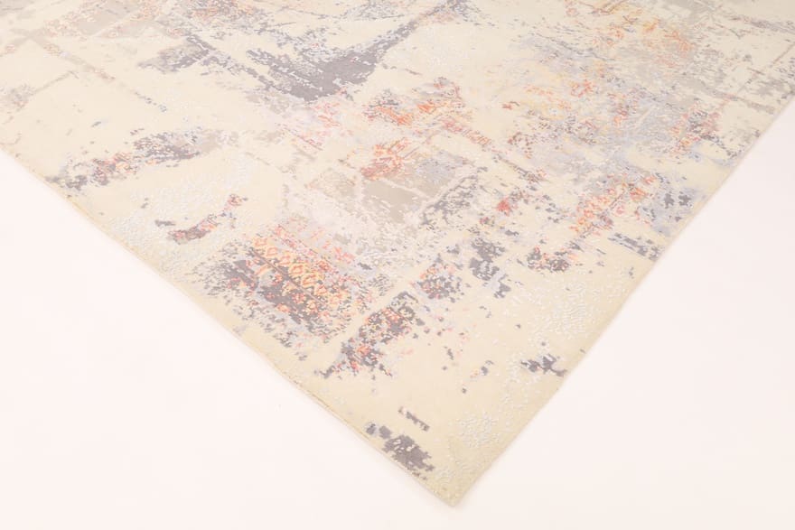 | Moderner Nepal Teppich | Knotendichte: 200.000 – 250.000 Knoten/m² | Material: Wolle mit Bamboo Seide | Größe: 302×251 cm | In neuem Zustand | Herkunft: Indien | Gewicht: ca. 26 kg | Dicke: ca. 10 mm | Farbe: Weiß/Beige | Form: Rechteckig