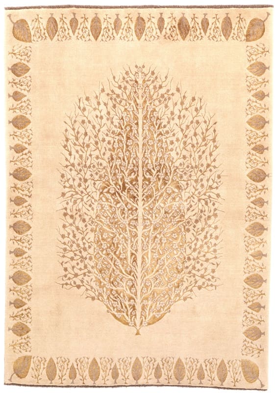 Moderner Teppich | Knotendichte: 200.000 – 250.000 Knoten/m² | Material: Wolle mit Bambusseide | Größe: 236×166 cm | In neuem Zustand | Ursprung: Indien | Verarbeitung: Handgeknüpft | Farbe: Weiß/Beige | Gewicht: ca. 12 kg | Dicke: ca. 10 mm
