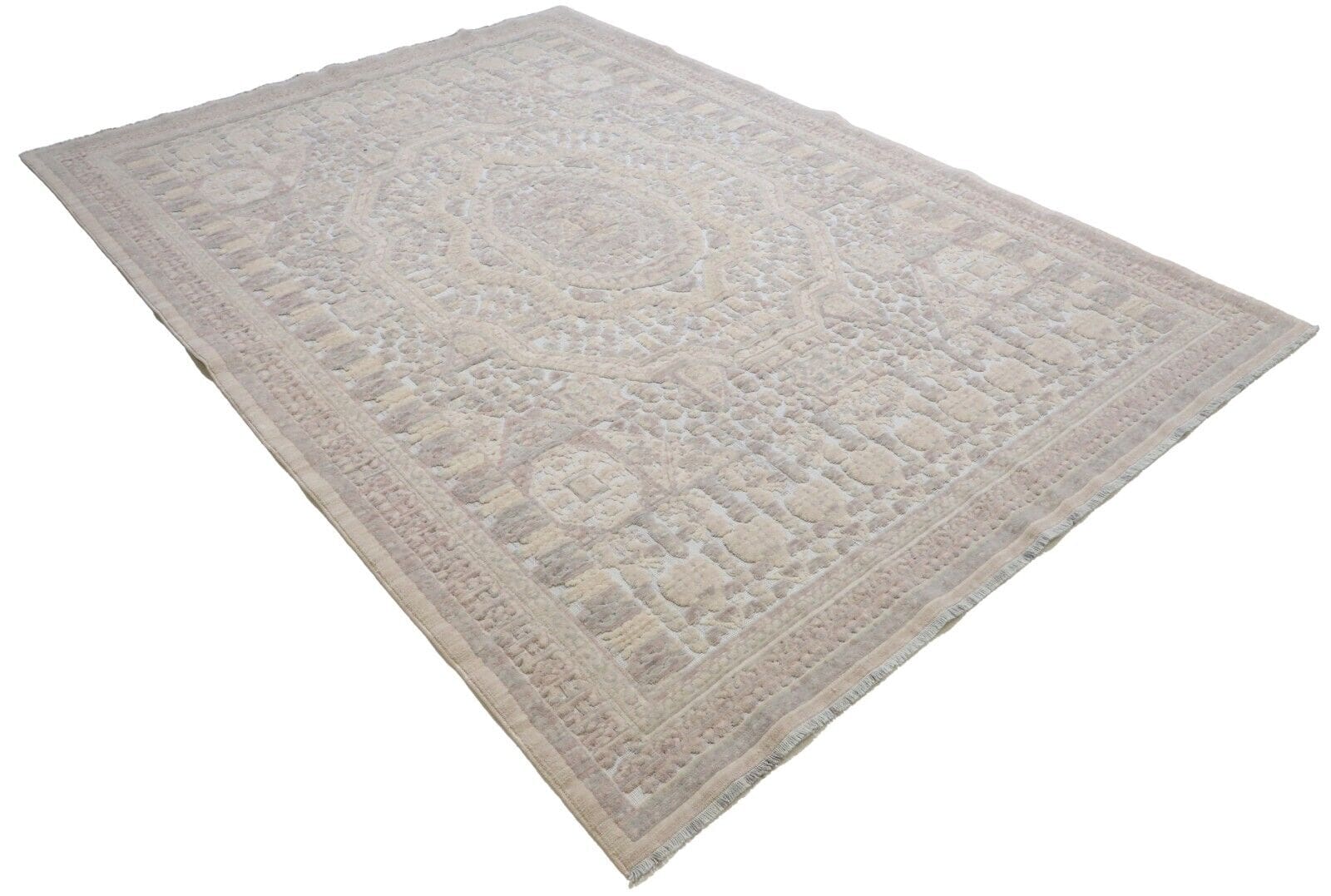 Teppich Modern Designer aus echter Wolle | Größe: 200 x 283 cm | Farbe: Beige | Muster: Orientalisch mit floralen Elementen | Material: Wolle & Baumwolle | Zustand: Neu ohne Etikett | Knotendichte: Hochflor | Stil: Modern | Herkunft: Türkei | Geeignet für Fußbodenheizung