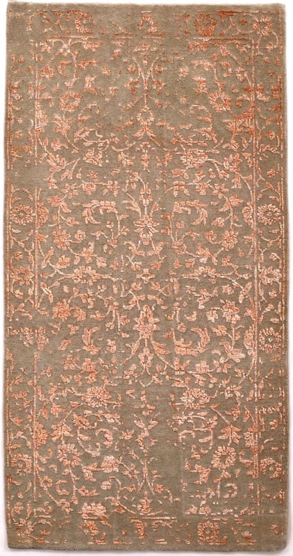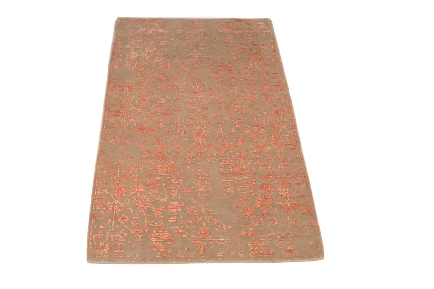 Modern Lotus Carpet | Knotendichte: 200.000 – 250.000 Knoten/m² | Material: Wolle mit Bamboo Seide | Größe: 145×75 cm | Farbe: Braun/Gelb | Form: Rechteckig | Zustand: Neu | Ursprung: Indien | Verarbeitung: Handgeknüpft | Dicke: ca. 14 mm | Gewicht: ca. 2 kg | Kette: Baumwolle