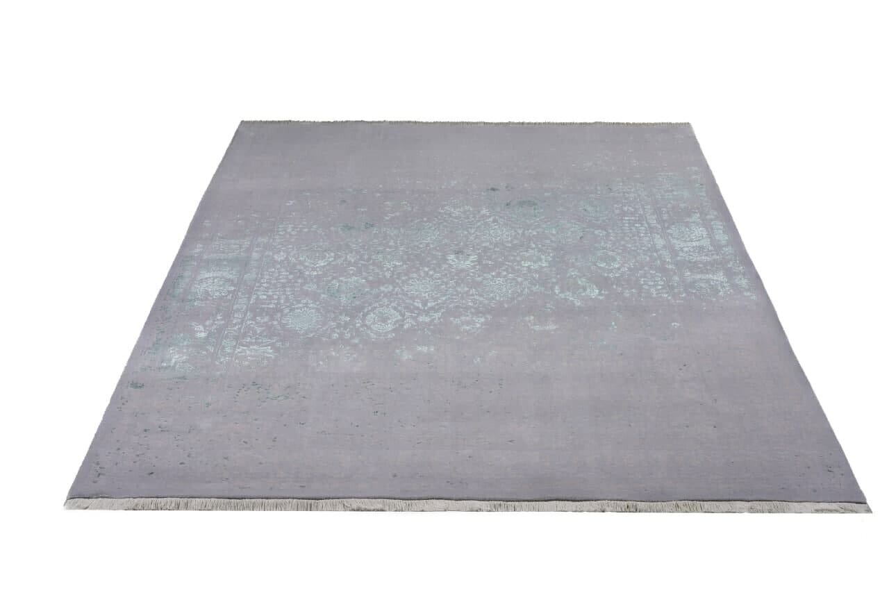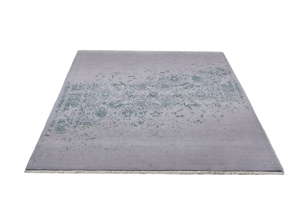 Moderner Orientteppich 2x3m, floral Grau Grün, 360.000 Knoten, handgeknüpft
