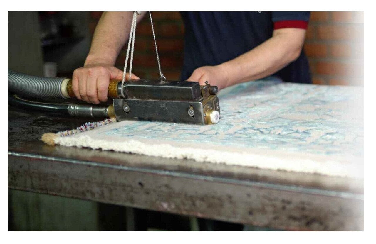 Hergestellt aus 90 % reiner Schurwolle und 10 % einer hochwertigen Naturfasermischung, verbindet dieser Teppich Langlebigkeit mit Komfort. Die Wolle wurde handgesponnen, was zur einzigartigen Textur und zum charakteristischen Glanz beiträgt. Darüber hinaus ist der Teppich aufgrund seiner robusten Materialien und der hohen Knotendichte von 360.000 Knoten pro m² äußerst strapazierfähig und eignet sich ideal für den täglichen Gebrauch.