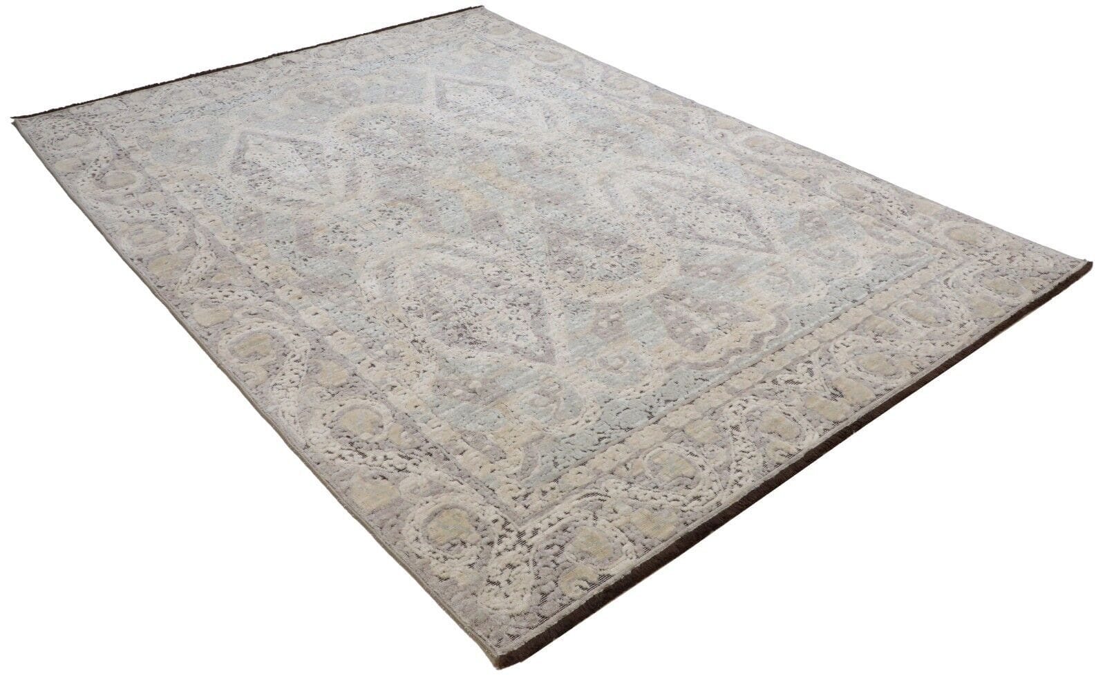 Der Teppich besteht aus 100% echter Wolle, einem Material, das für seine Langlebigkeit und natürliche Schönheit bekannt ist. Wolle hat die Fähigkeit, Temperaturunterschiede auszugleichen und ist damit hervorragend geeignet für den Einsatz in Wohnräumen, wo Komfort und Gemütlichkeit im Vordergrund stehen. Die handgeknüpfte Technik ermöglicht eine hohe Knotendichte, was dem Teppich nicht nur eine robuste Struktur verleiht, sondern auch die Detailgenauigkeit der Muster zur Geltung bringt. Das Ergebnis ist ein Teppich, der nicht nur ästhetisch ansprechend, sondern auch funktional ist.