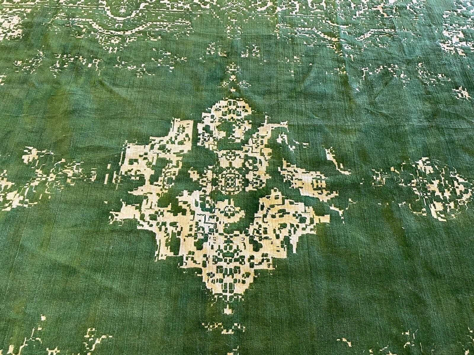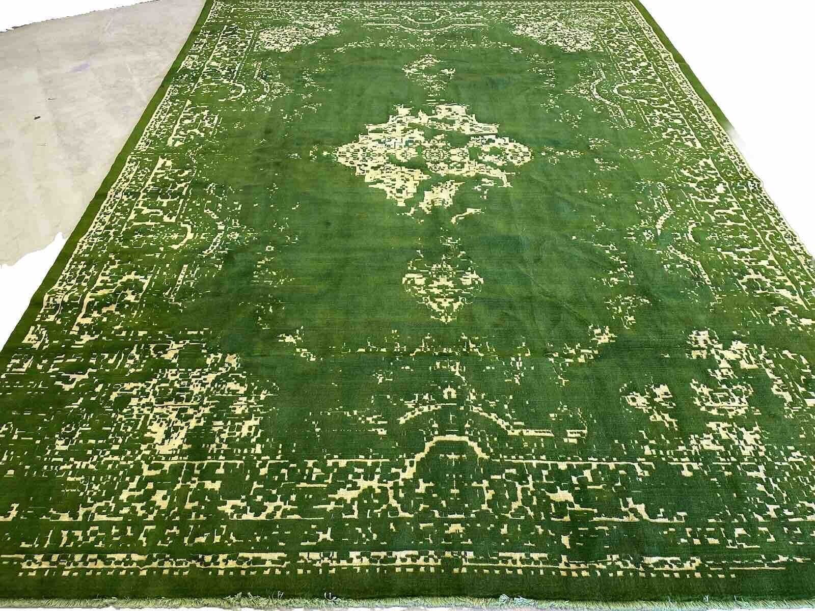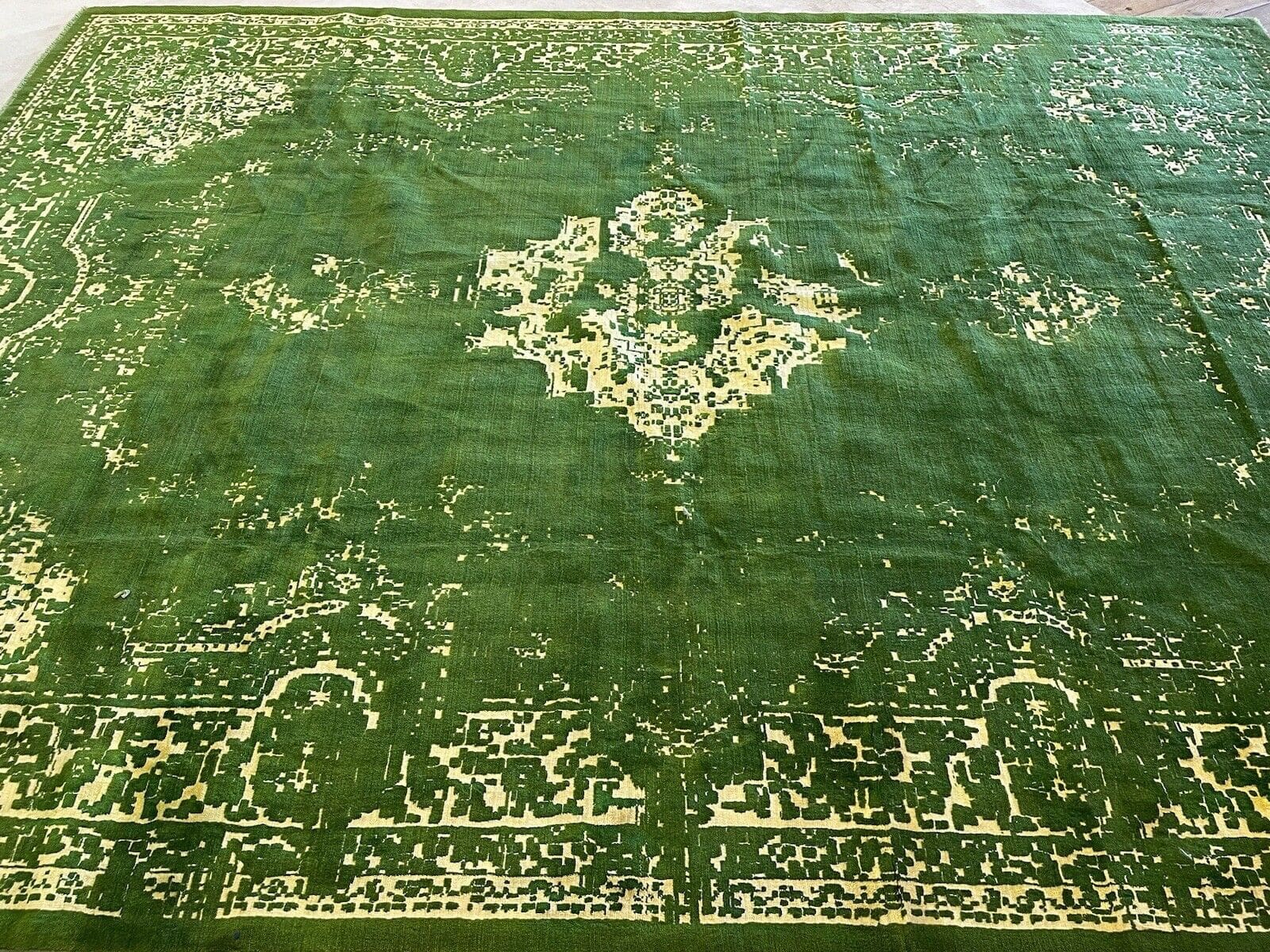 Mit seinen großzügigen Abmessungen bietet der Teppich ausreichend Platz, um sowohl in großen als auch in kleinen Räumen verwendet zu werden. Sein Zustand ist als sehr gut zu bewerten, was bedeutet, dass er kaum Gebrauchsspuren aufweist und bereit ist, Ihrem Zuhause neuen Glanz zu verleihen. Durch den Direktvertrieb ohne Zwischenhandel erhalten Sie nicht nur ein erstklassiges Produkt, sondern auch ein hervorragendes Preis-Leistungs-Verhältnis.