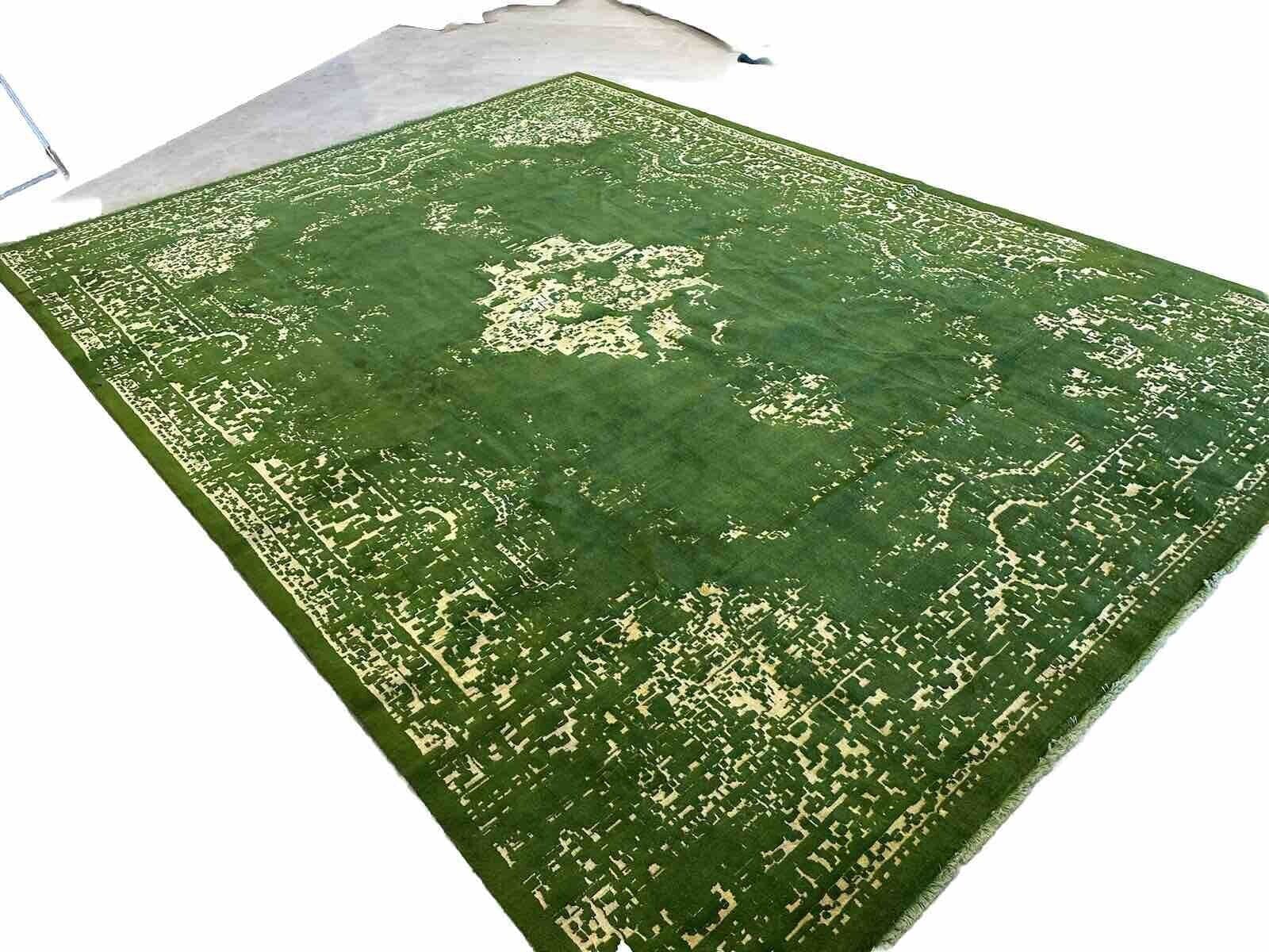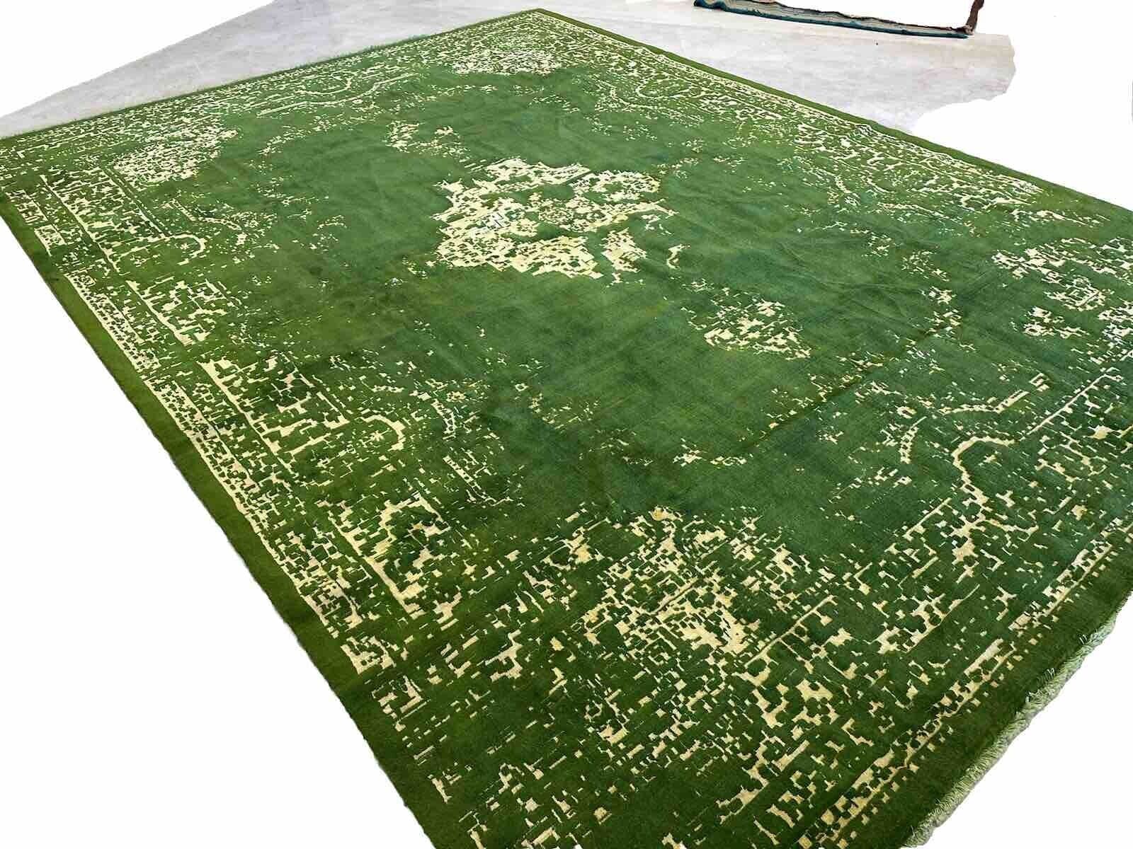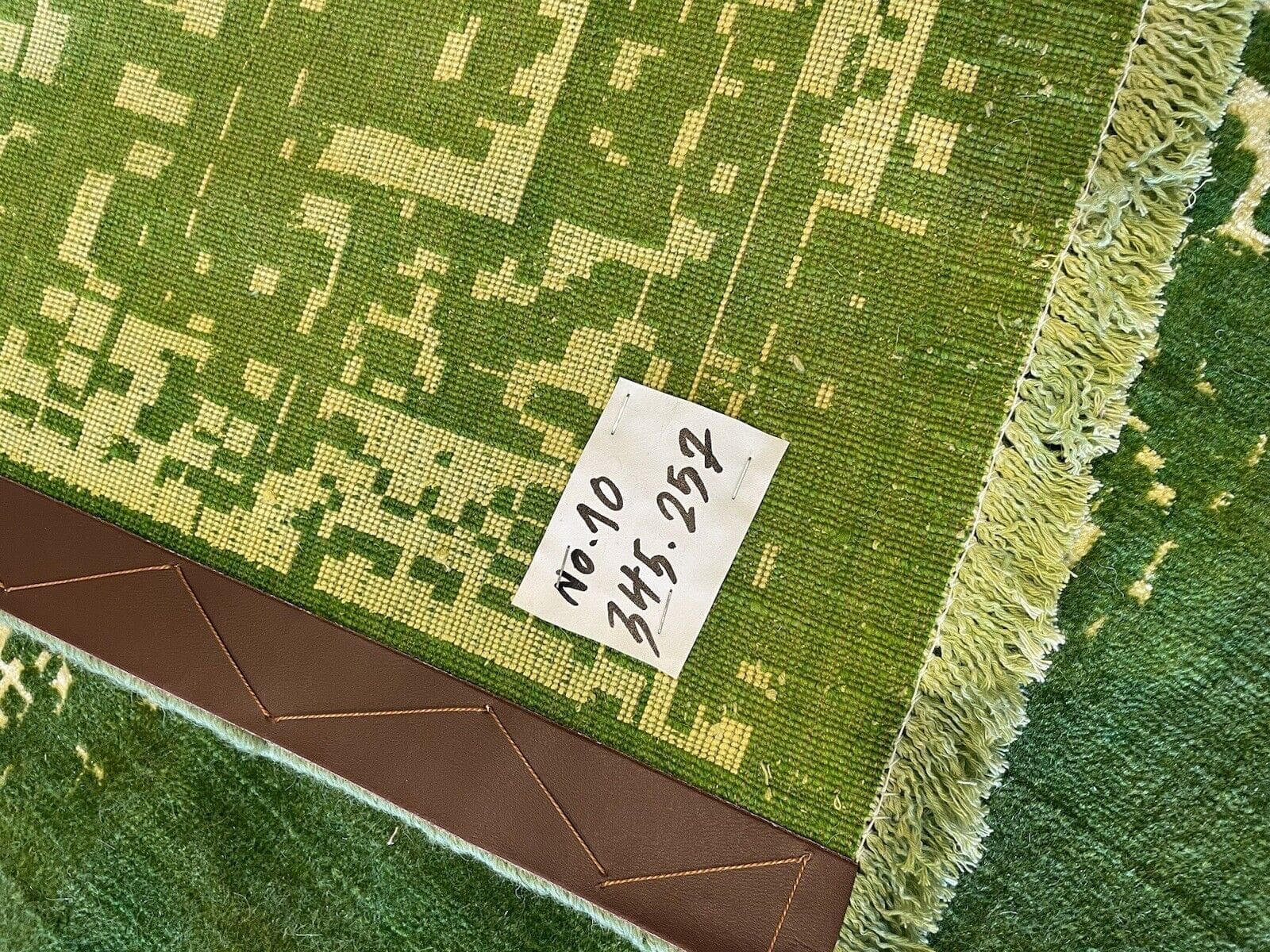 Moderner Perserteppich 350×250 cm – 100% reine Wolle, sehr gute Qualität, moderne grüne Farbgestaltung, handgeknüpft