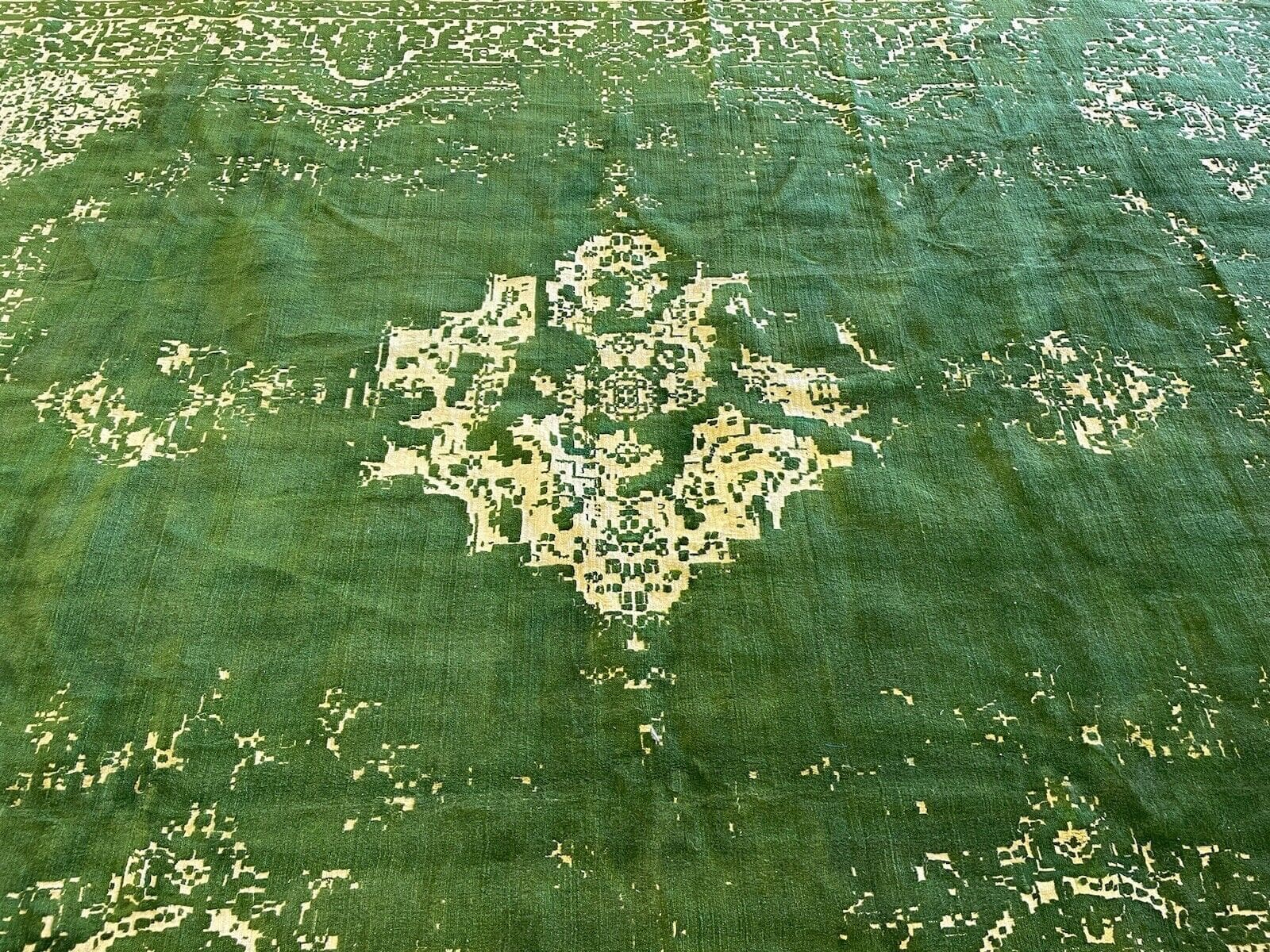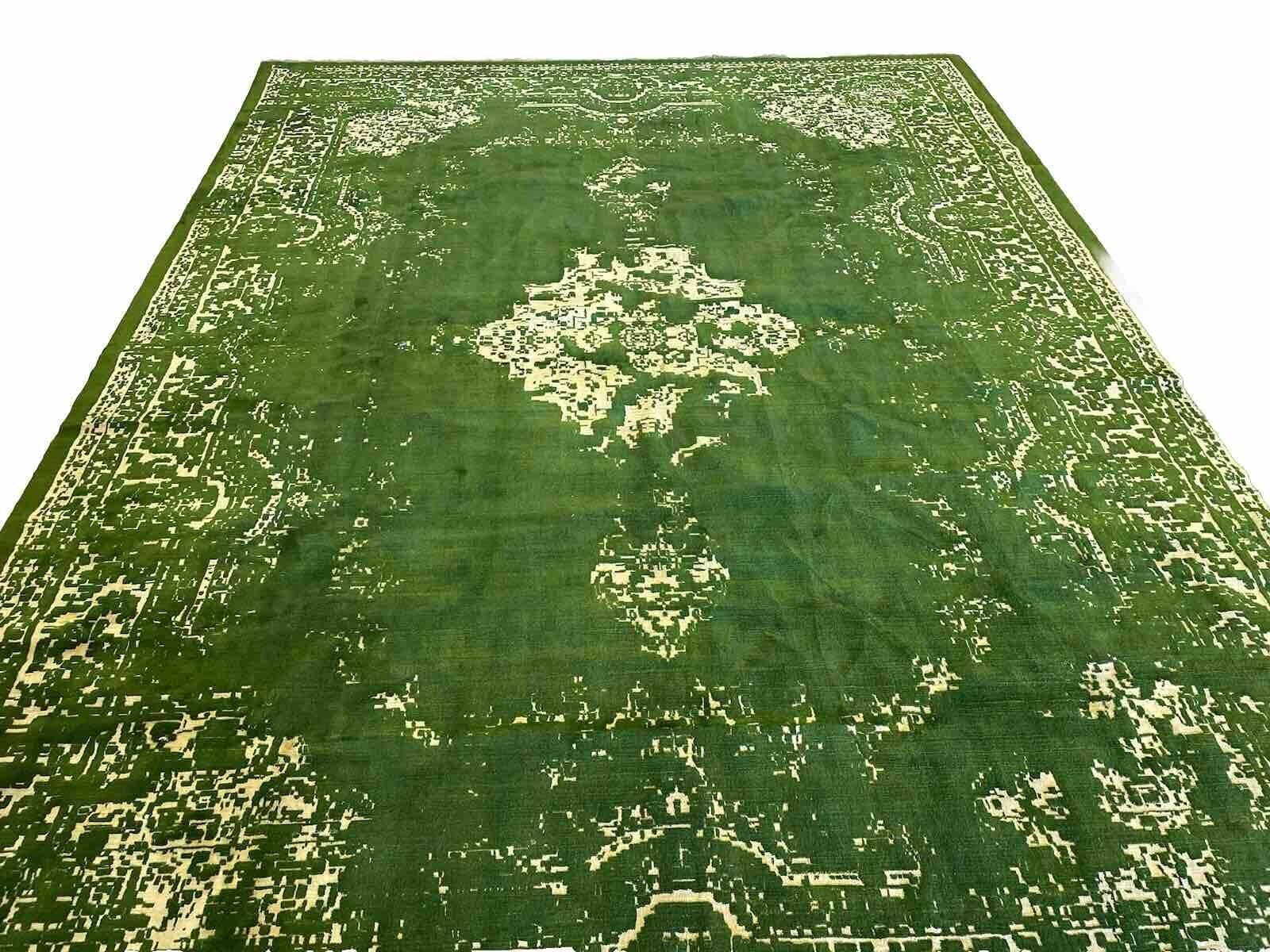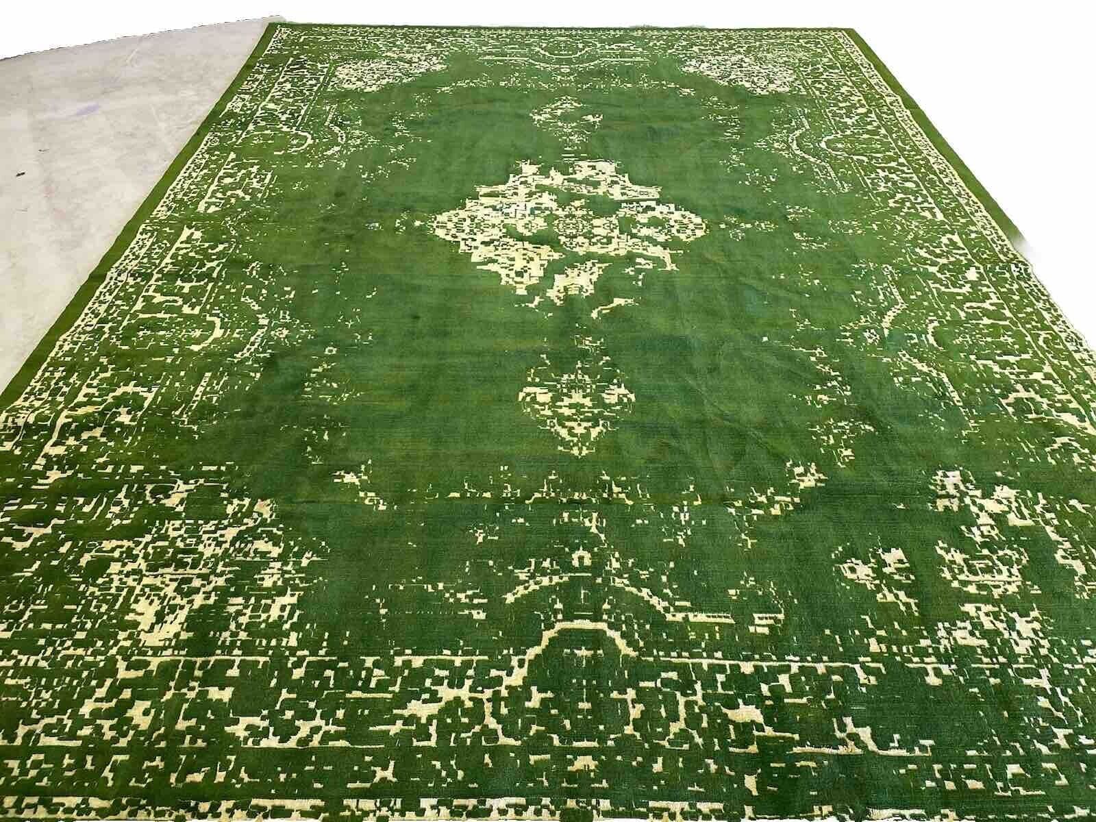 Moderner Perserteppich 350×250 cm – 100% reine Wolle, sehr gute Qualität, moderne grüne Farbgestaltung, handgeknüpft