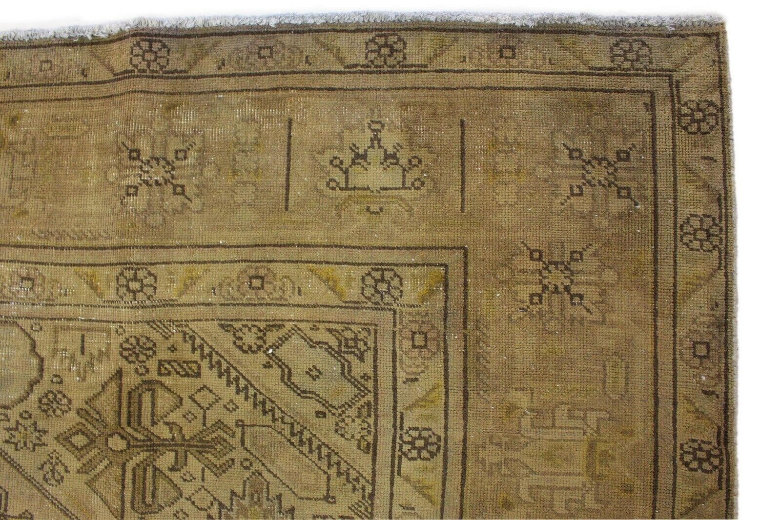 Das Design dieses Vintage Orientteppichs besticht durch ein harmonisches Zusammenspiel aus traditionellen und modernen Elementen. Die beigen Farbtöne sind elegant und zeitlos, und die Muster wecken Erinnerungen an die opulente Pracht orientalischer Kunst. Die floralen und geometrischen Motive verleihen dem Teppich Charakter und machen ihn zum Blickfang in jedem Raum.