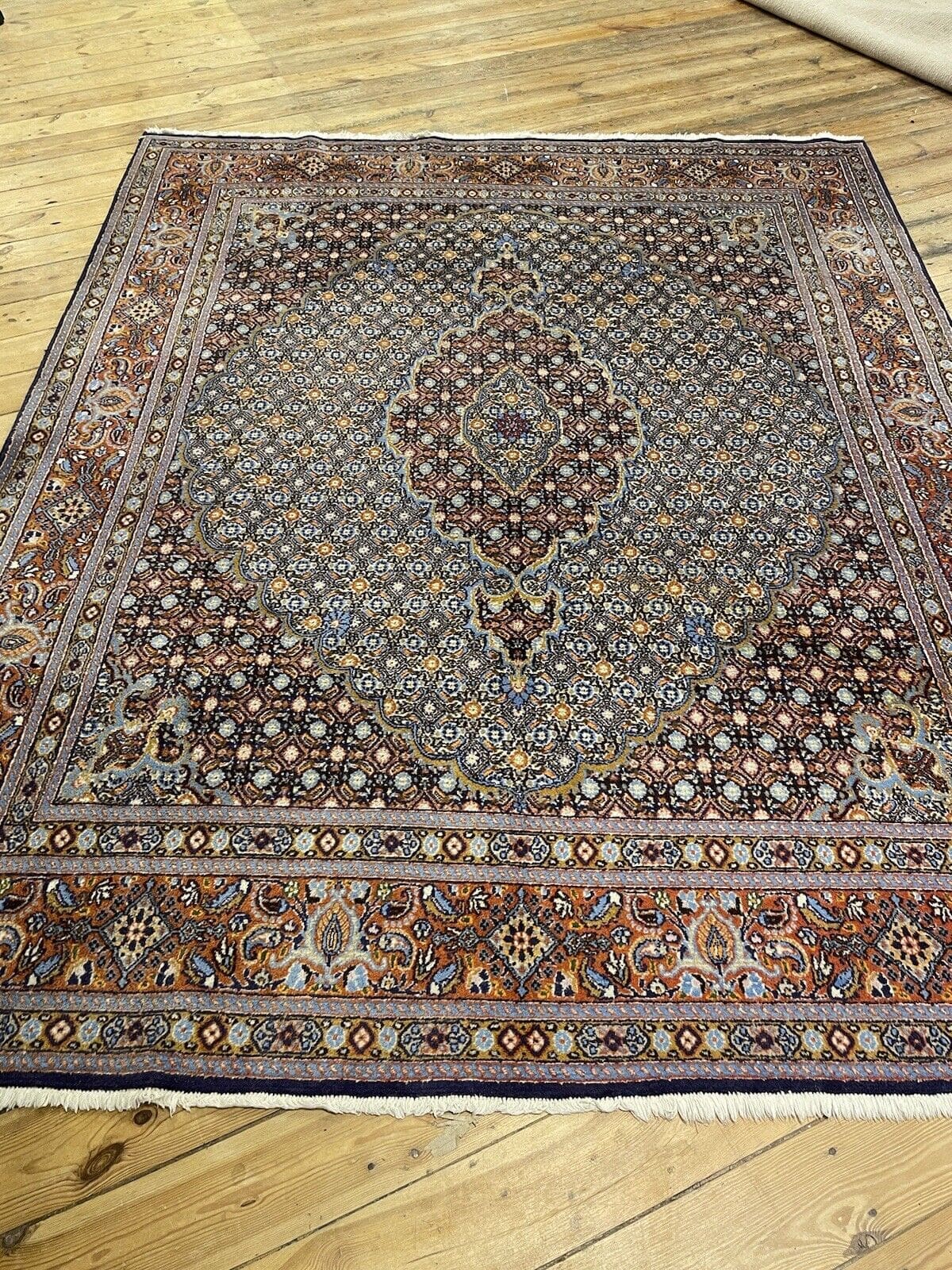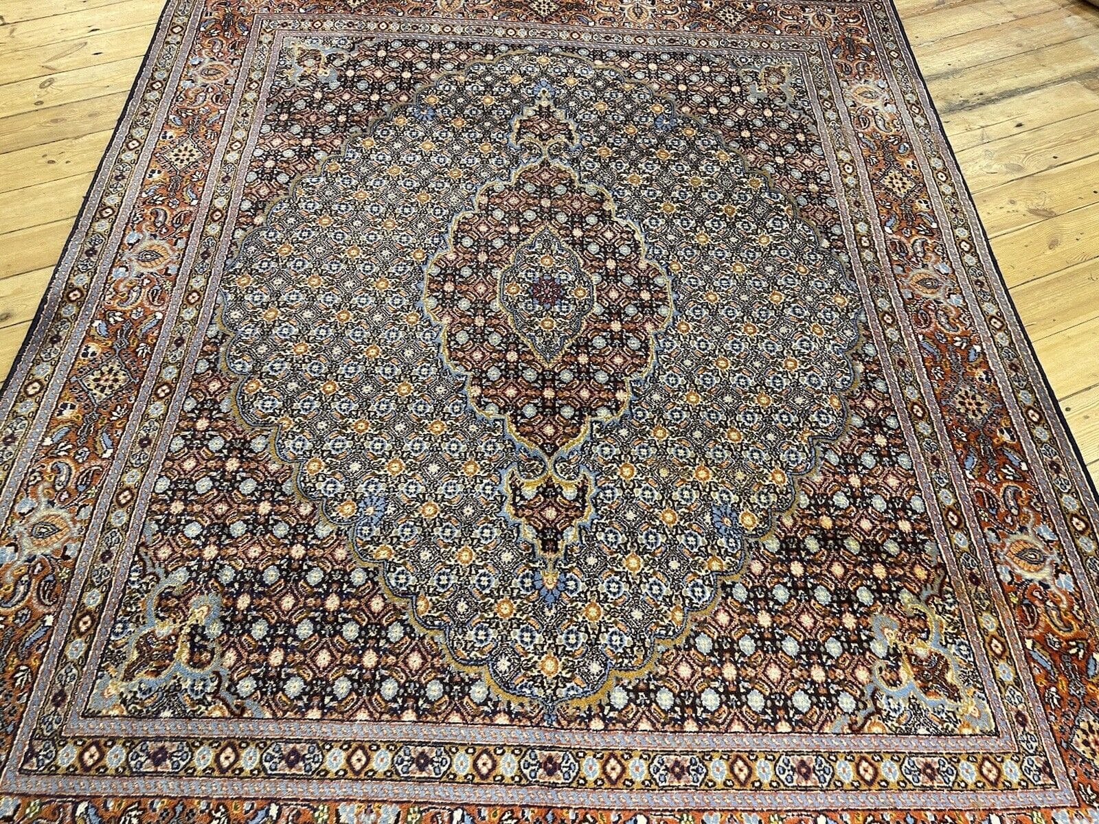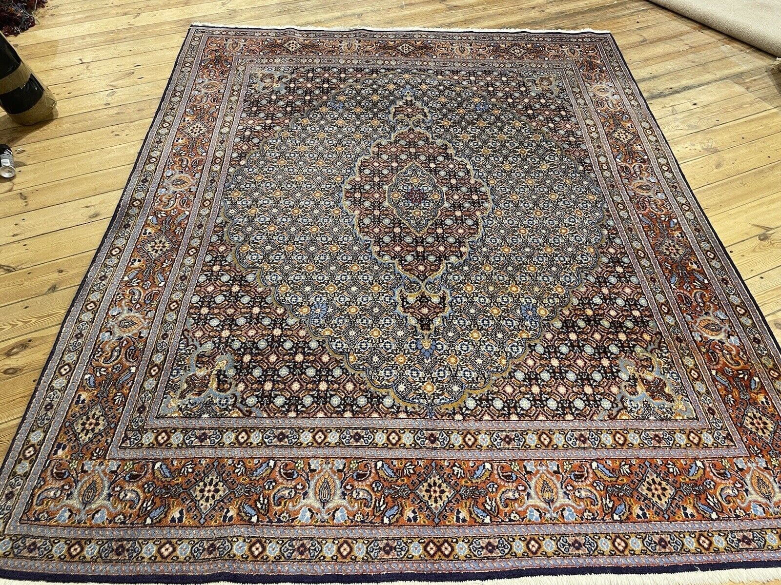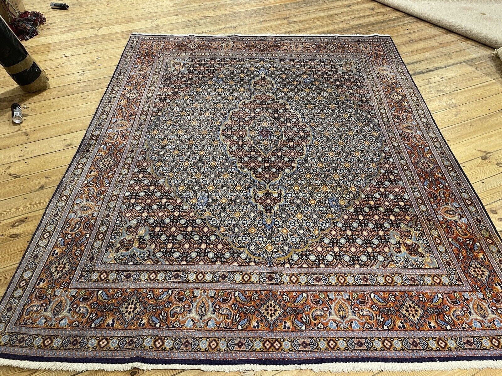 Dieser wunderbare Teppich stammt aus der Region Moud im Iran, die bekannt ist für ihre edlen Perserteppiche. Die Stadt Moud und ihre Umgebung haben eine jahrhundertelange Tradition in der Teppichknüpfkunst, die tief in der Kultur und dem Erbe des iranischen Volkes verwurzelt ist. Perserteppiche aus dieser Region zeichnen sich durch ihre elegante Ästhetik und die Verwendung von lebendigen Farben und traditionellen Motiven aus.