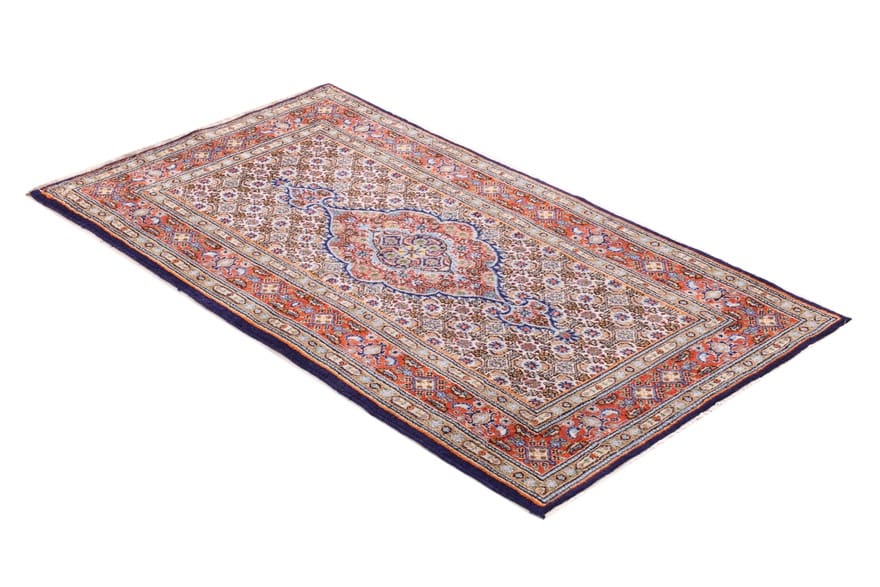 | Moud-Teppich mit Medaillon- und Herati-Muster | Knotendichte: 320.000 – 360.000 Knoten/m² | Material: Handgesponnene Wolle und Baumwolle | Größe: 150×81 cm | Zustand: Neuzeitlich (0-20 Jahre) | Herkunft: Iran / Persien | Gewicht: ca. 6 kg | Dicke: ca. 10 mm