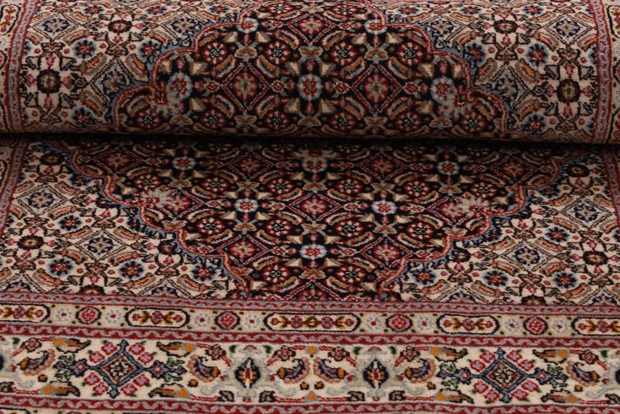 Der Moud Teppich stammt aus der gleichnamigen Region im Iran, die für ihre reiche Teppichtradition bekannt ist. Moud, eine Stadt in der Provinz Khorasan, hat eine lange Geschichte in der Herstellung feiner Teppiche. Die Teppiche dieser Region sind für ihre lebendigen Farben, komplexen Muster und die hohe Qualität ihrer Materialien geschätzt. Traditionell werden die Teppiche von erfahrenen Handwerkern gefertigt, die ihr Wissen oft über Generationen hinweg weitergeben. Dieser Teppich ist ein hervorragendes Beispiel für die Kultur und Kunstfertigkeit der persischen Teppichknüpferei.