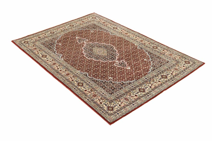 Handgewebter Moud-Teppich | Knotendichte: 320.000 – 360.000 Knoten/m² | Material: Wolle, Seide, Baumwolle | Größe: 251×166 cm | Farbe: Braun/Gelb | Zustand: Neu | Ursprung: Iran/Persien | Dicke: ca. 10 mm | Gewicht: ca. 10 kg