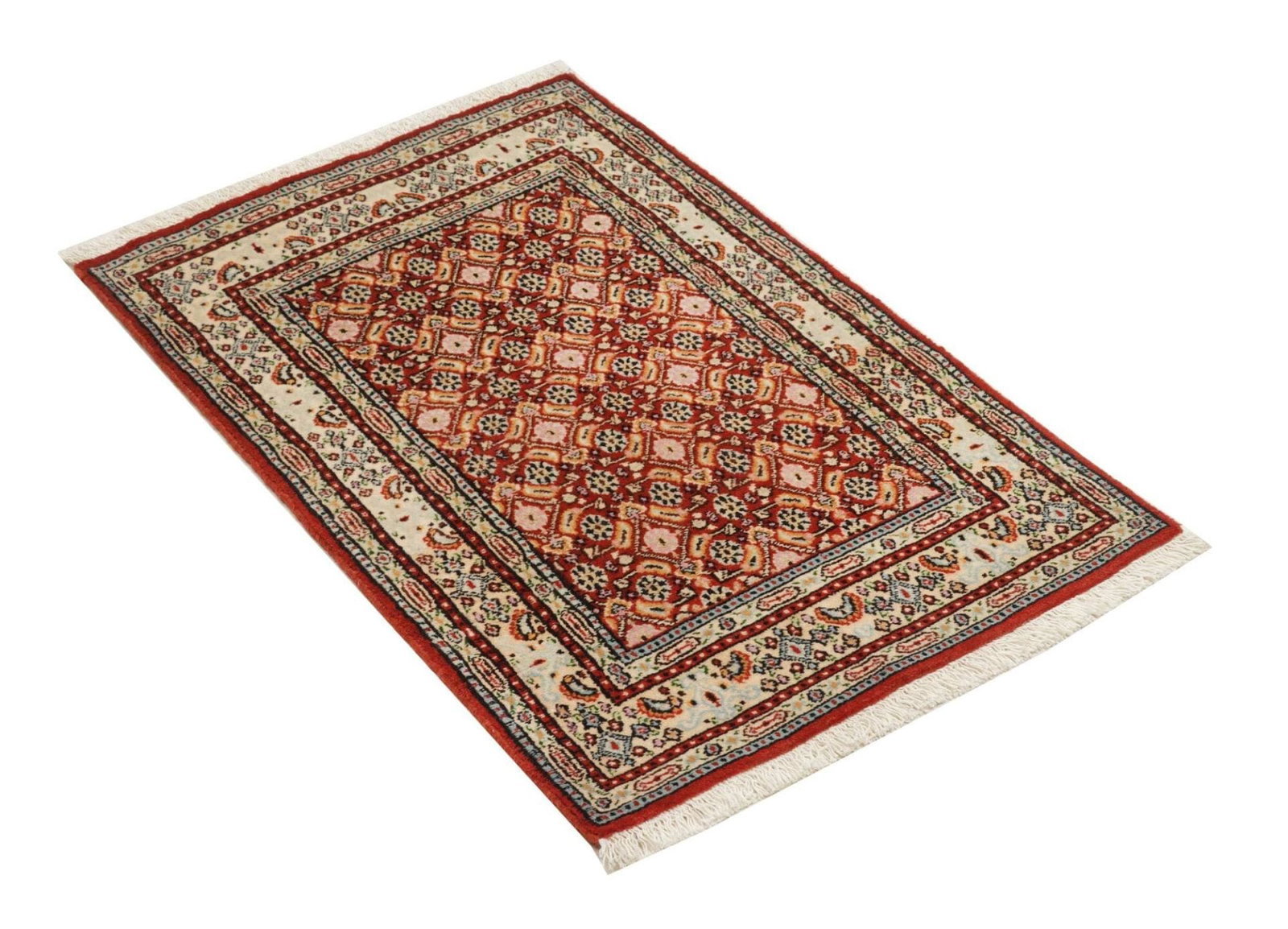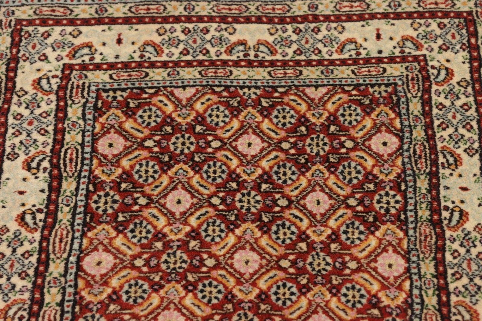 325$Ursprünglicher Preis war: 325$258$Aktueller Preis ist: 258$Handgeknüpfter Moud Teppich | Knotendichte: ca. 200.000 Knoten/m² | Material: 100% Schurwolle | Größe: 58 x 90 cm | Zustand: Ausgezeichnet | Herkunft: Iran | Florales Muster | Kette: 100% Baumwolle | Höhe ca.: 10-12 mm