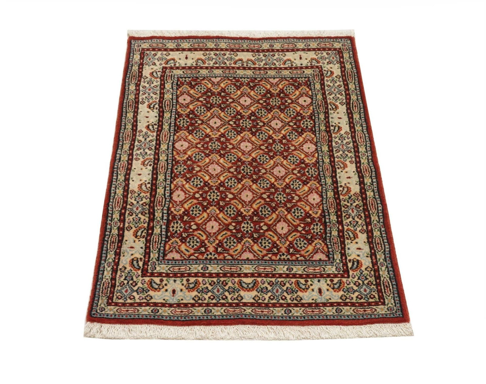 Moud Teppich 58 x 90cm, floral, aus Schurwolle, handgeknüpft, Perserteppich
