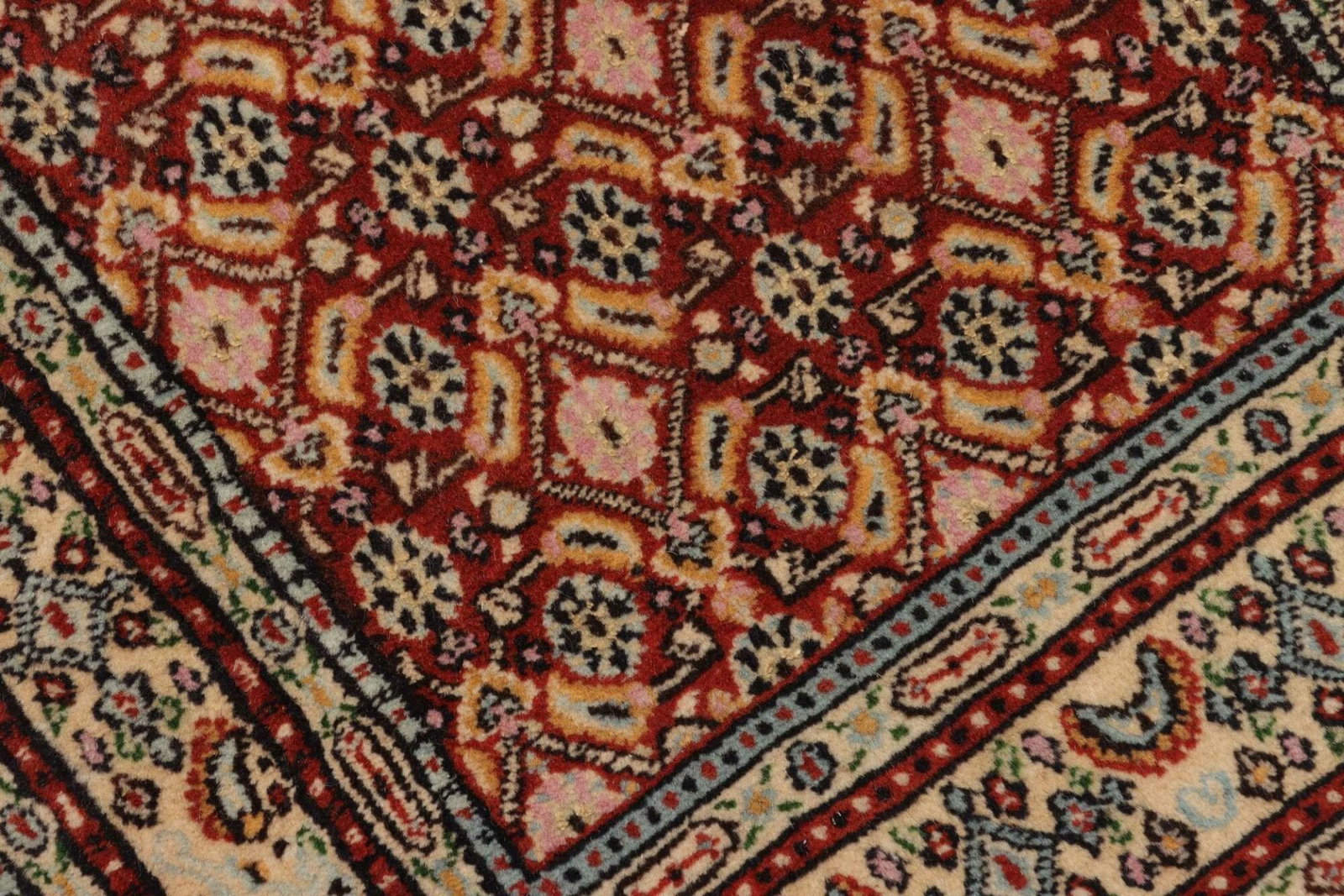 Ein bemerkenswertes Merkmal des Moud Teppichs ist die herausragende Knotentechnik, die von den erfahrenen Handwerkern in der Region entwickelt wurde. Diese Technik ermöglicht eine hohe Knotendichte, wodurch die Qualität und die Detailgenauigkeit der Muster optimiert werden. Jeder Moud Teppich ist ein Unikat, das nicht nur als Wohnaccessoire dient, sondern auch als Kunstwerk, das die Handschrift seiner Schöpfer trägt. Darüber hinaus ist Schurwolle von Natur aus hypoallergen, was ihn besonders geeignet für Haushalte mit Allergikern macht.