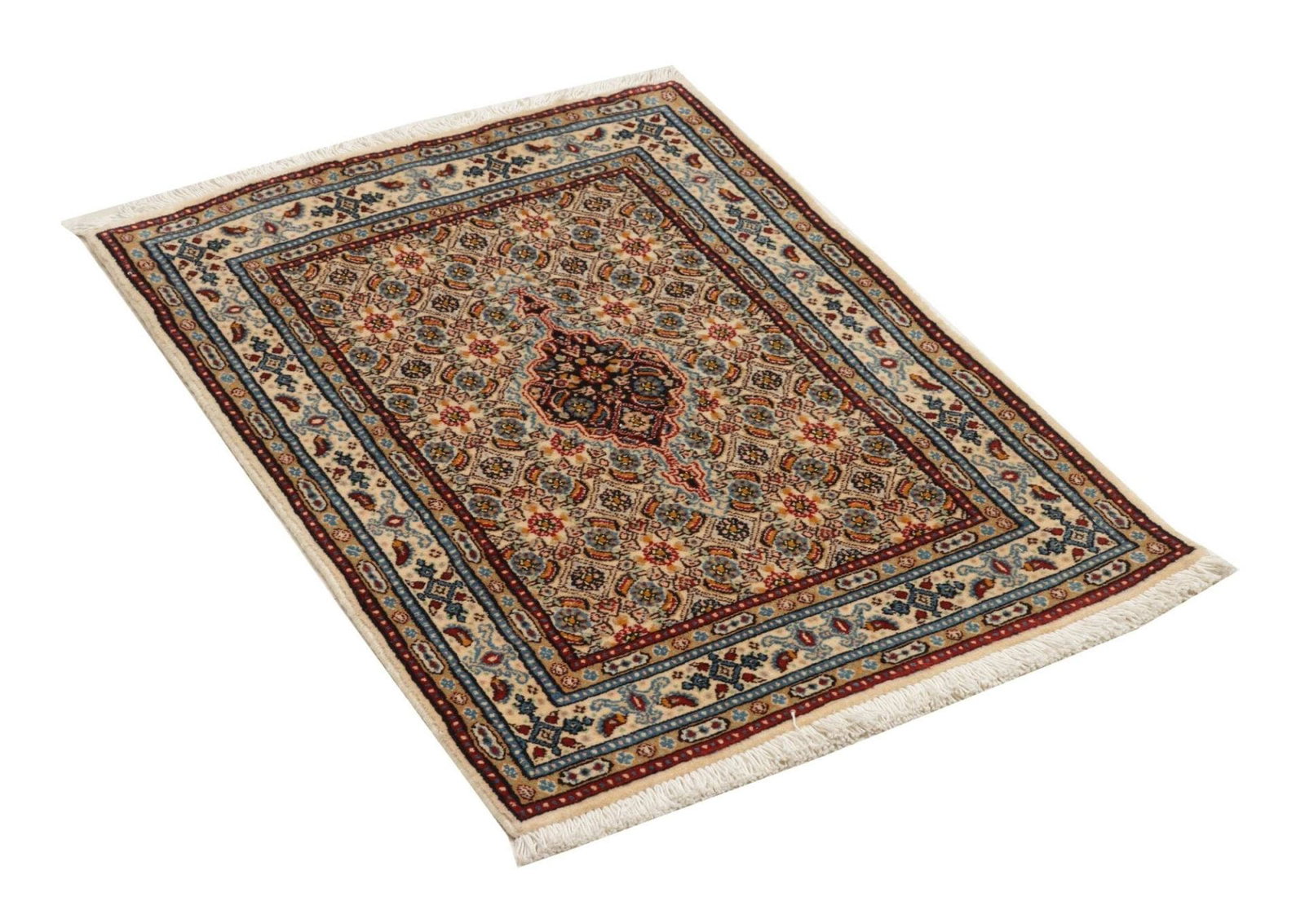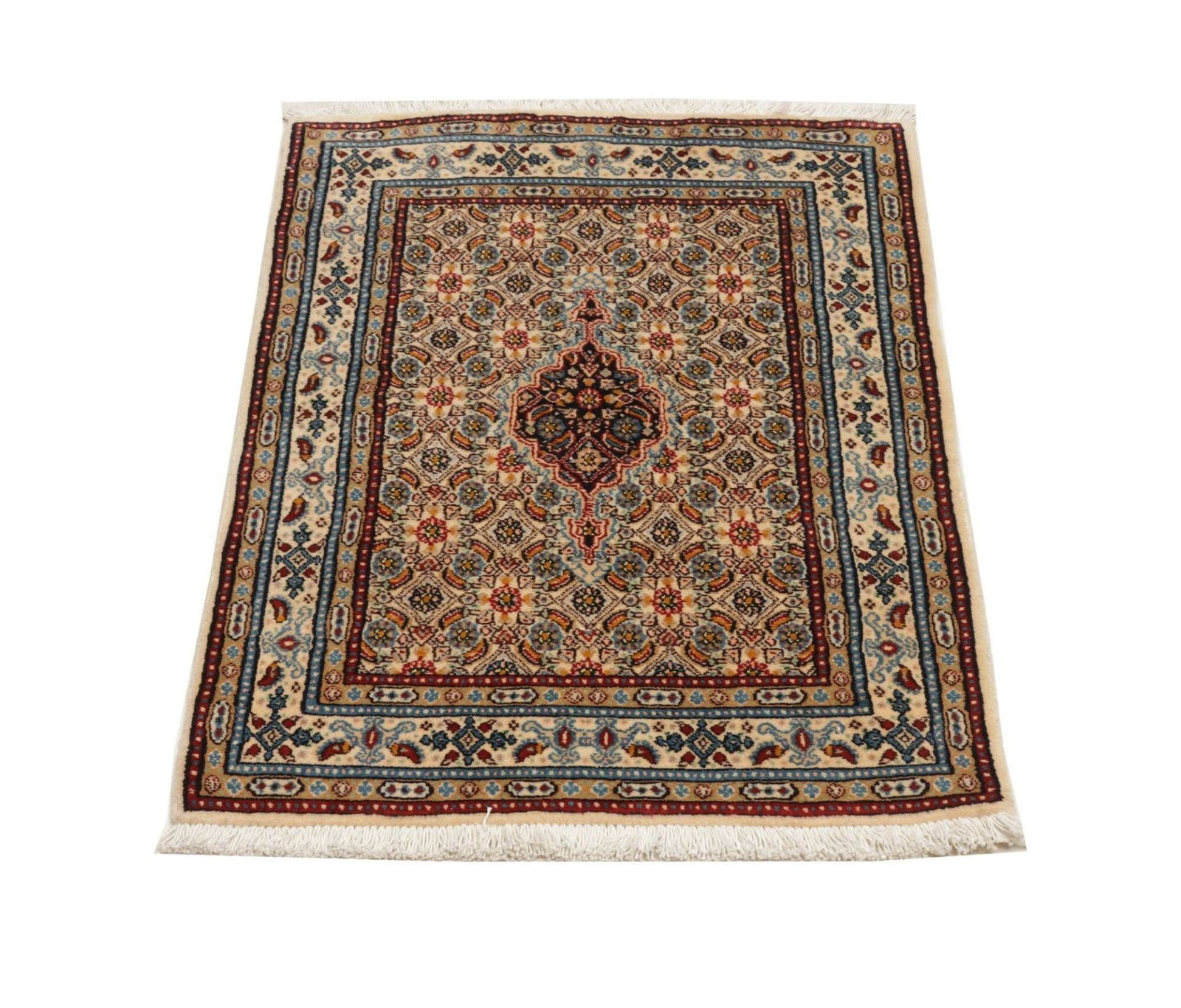Moud Teppich 63 x 87cm, florales Muster, Schurwolle, handgeknüpft, Perserteppich