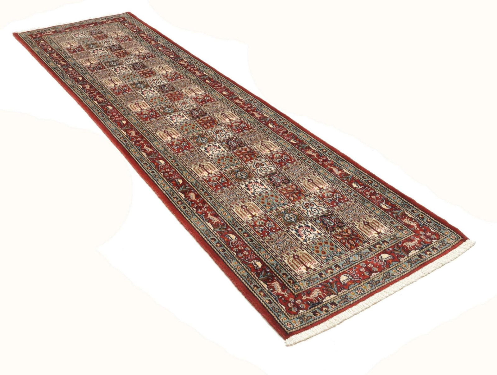 Floraler Moud Teppich | Knotendichte: ca. 200.000 Knoten/m² | Material: 100% Schurwolle | Größe: 83 x 288 cm | Zustand: Sehr gut | Herkunft: Iran | Verarbeitung: Handgeknüpft
