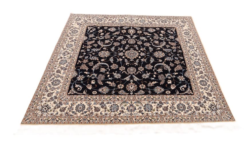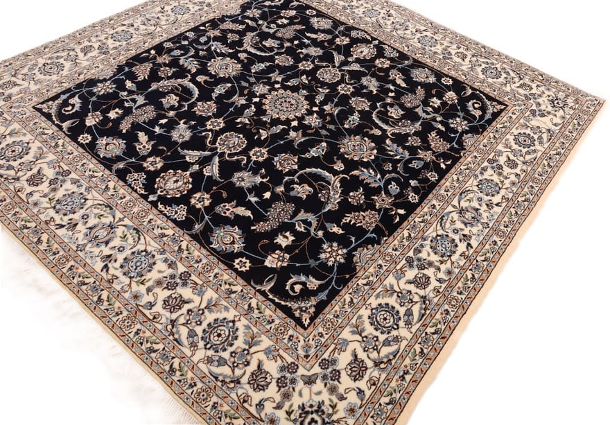 Handgewebter Nain 6 La Teppich | Knotendichte: 640.000 Knoten/m² | Material: Hochwertige Wolle und Baumwolle | Größe: 205×203 cm | Farbe: Blau/Türkis | Zustand: Antik | Ursprung: Iran/Persien | Pflegeleicht und langlebig