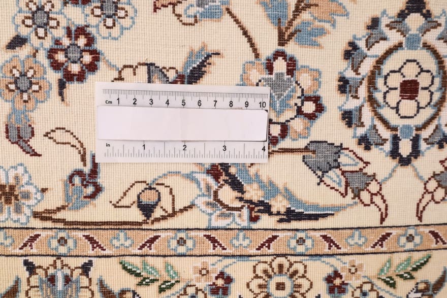 Die Farbgestaltung des Nain Teppichs in Blau und Creme verleiht jedem Raum eine elegante Note. Das ausgewogene Zusammenspiel dieser Farben ermöglicht eine einfache Integration in verschiedene Einrichtungsstile, von klassisch bis modern. Das Muster aus floralen Elementen und symmetrischen Formen ist nicht nur dekorativ, sondern trägt auch kulturelle Bedeutungen und Geschichten, die tief in Traditionen verwurzelt sind. Die oft verwendeten orientalischen Motive symbolisieren Fruchtbarkeit, Glück und Harmonie, wodurch der Teppich nicht nur ein dekoratives Element ist, sondern auch einen spirituellen Wert hat.