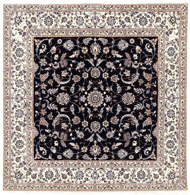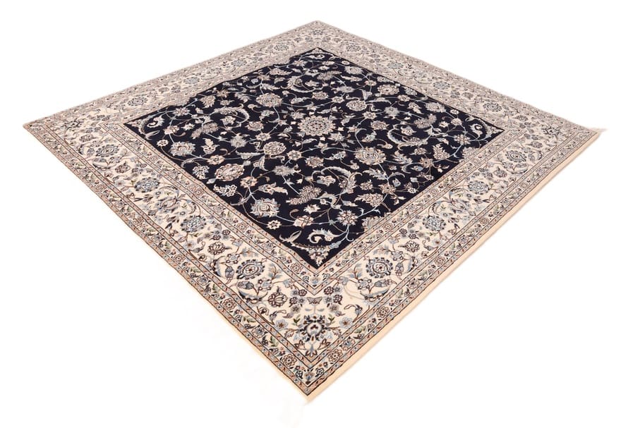 Nain 6 La Teppich 205×203 cm, Blau-Creme, handgeknüpft, Orientteppich