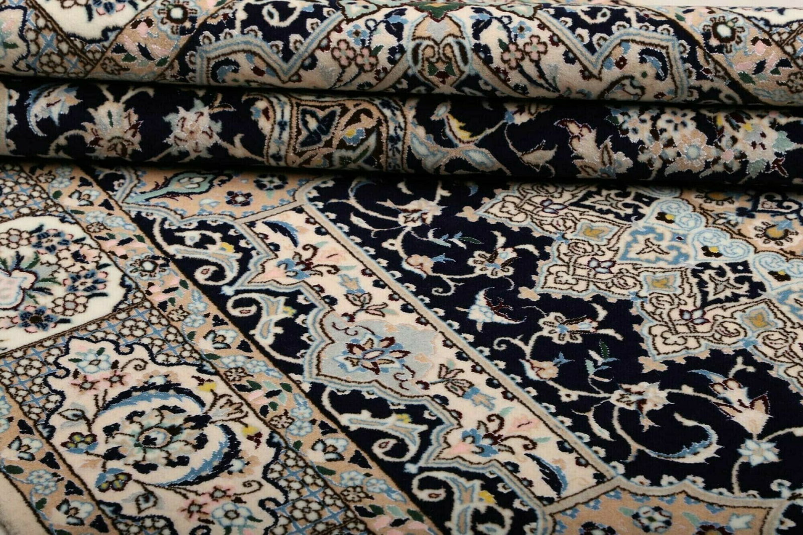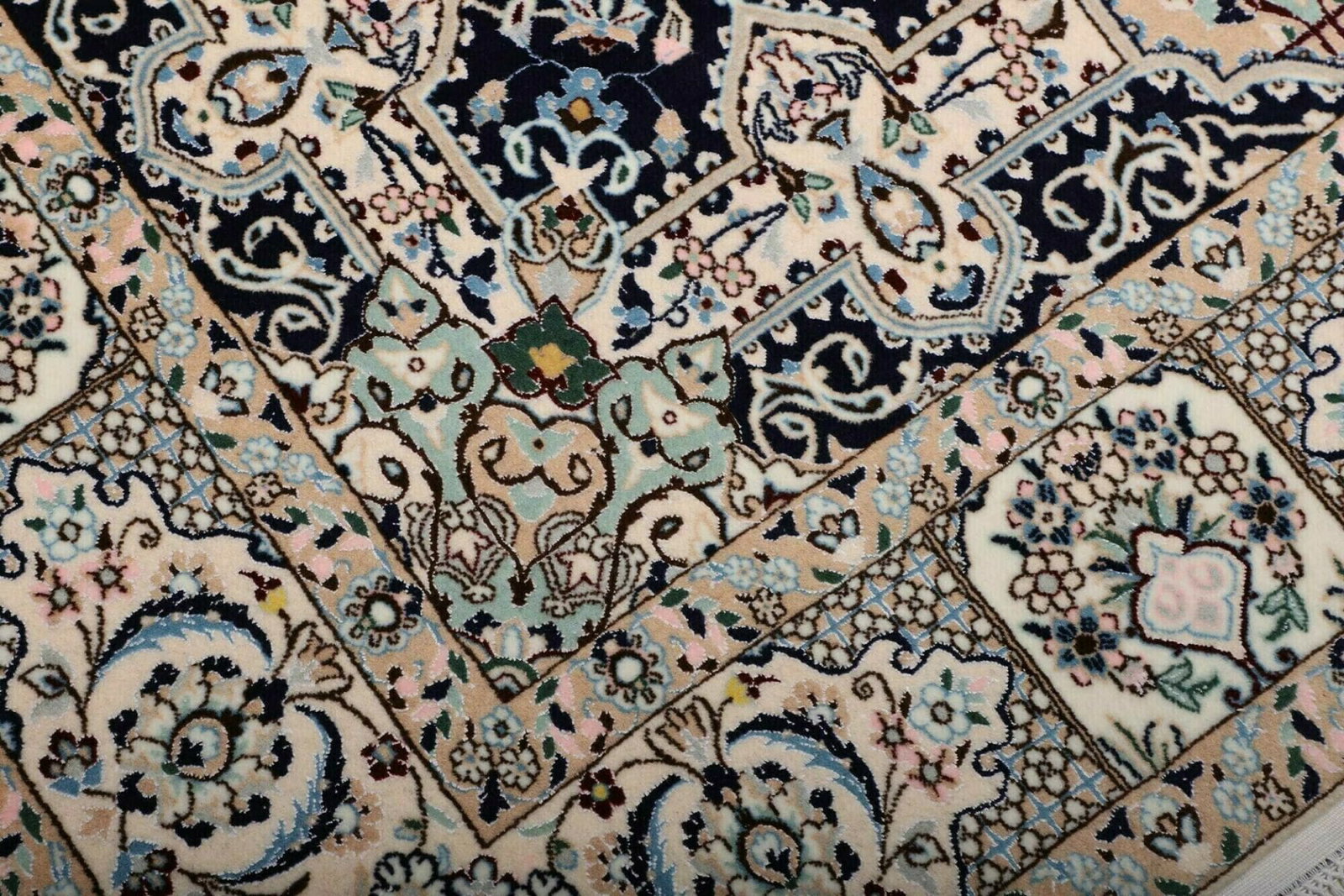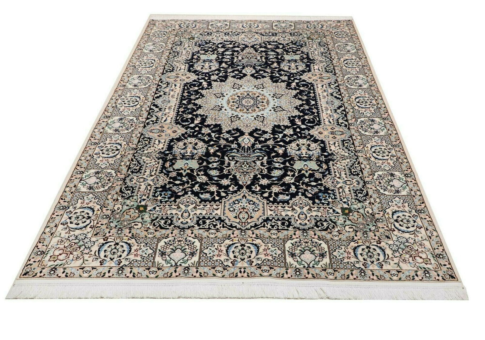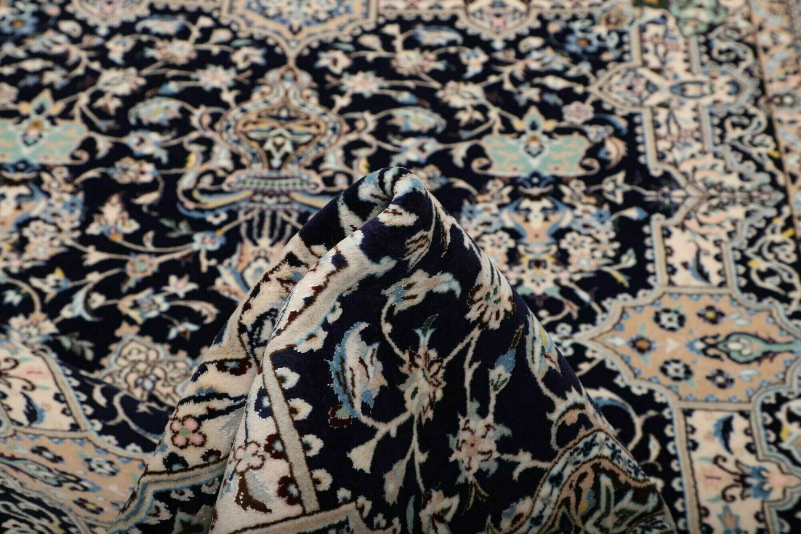 Nain Teppich | Knotendichte: ca. 900.000 Knoten/m² | Material: 100% Schurwolle (Flor), 100% Baumwolle (Kette) | Größe: 157×256 cm | Herkunft: Iran | Verarbeitung: Handgeknüpft | Zustand: Exklusiv und hochwertig | Muster: Traditionelle florale Motive mit königsblauem Akzent