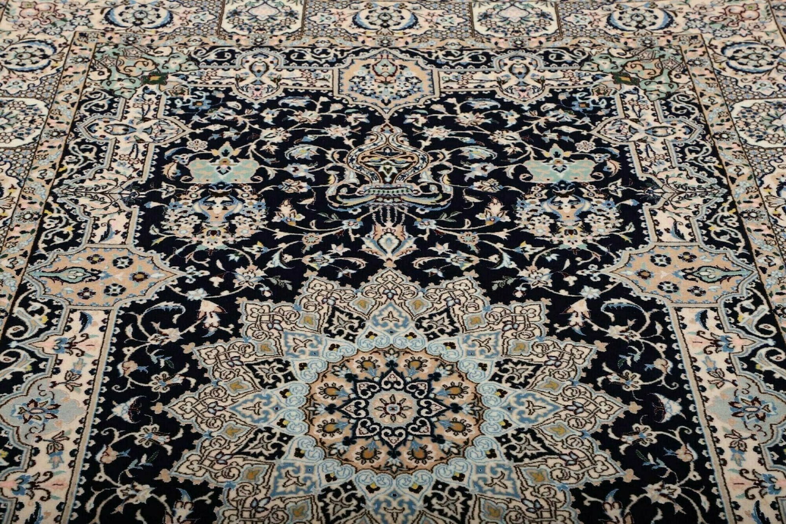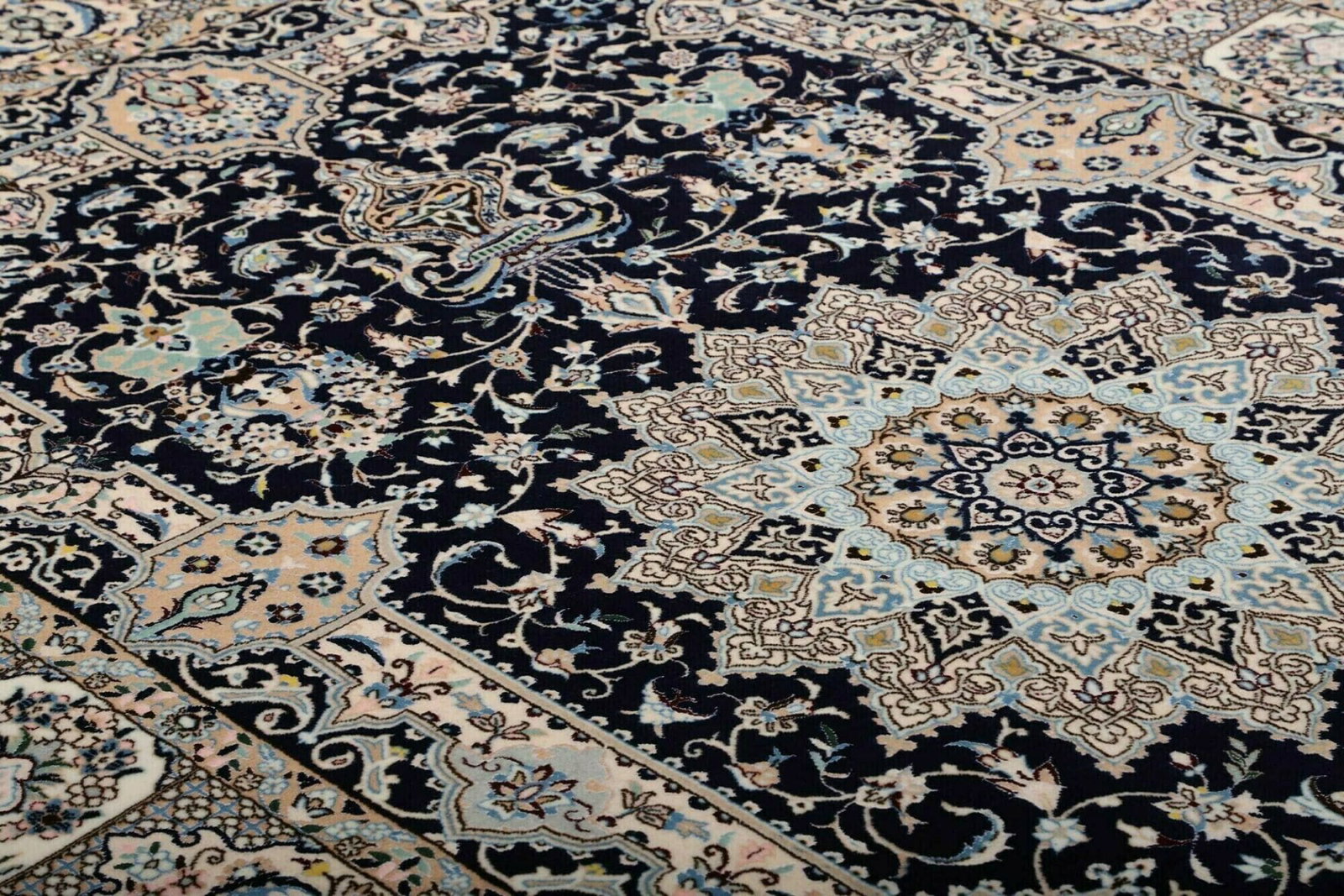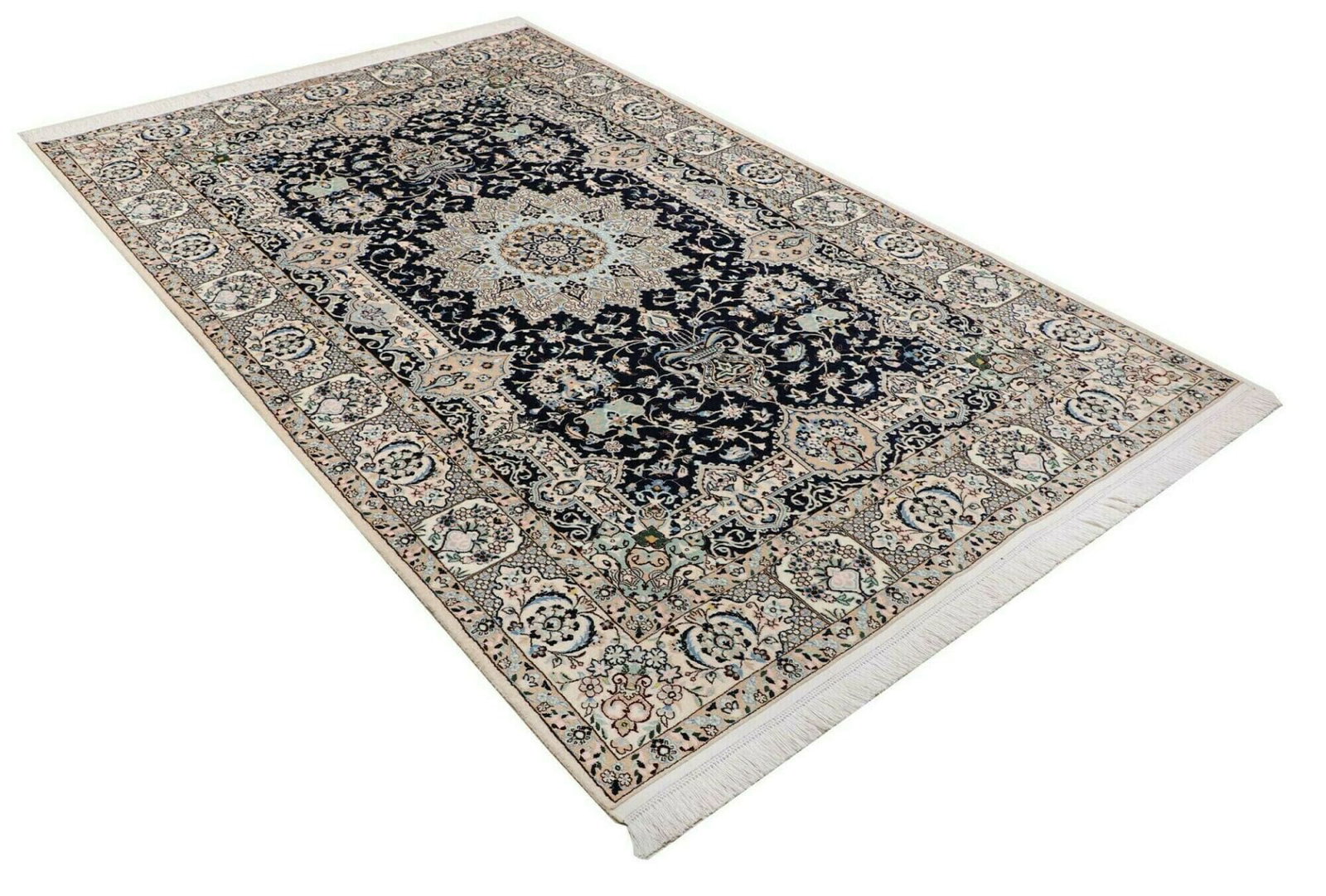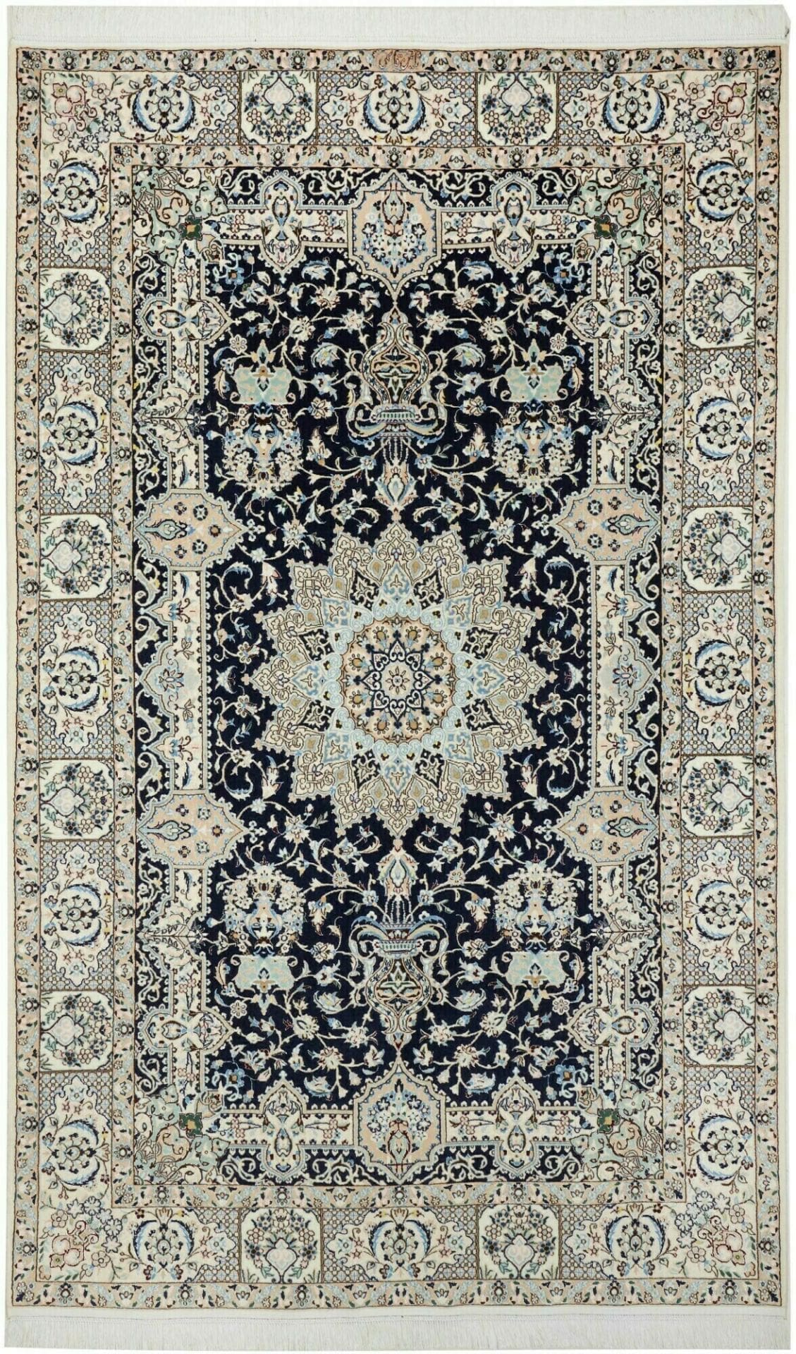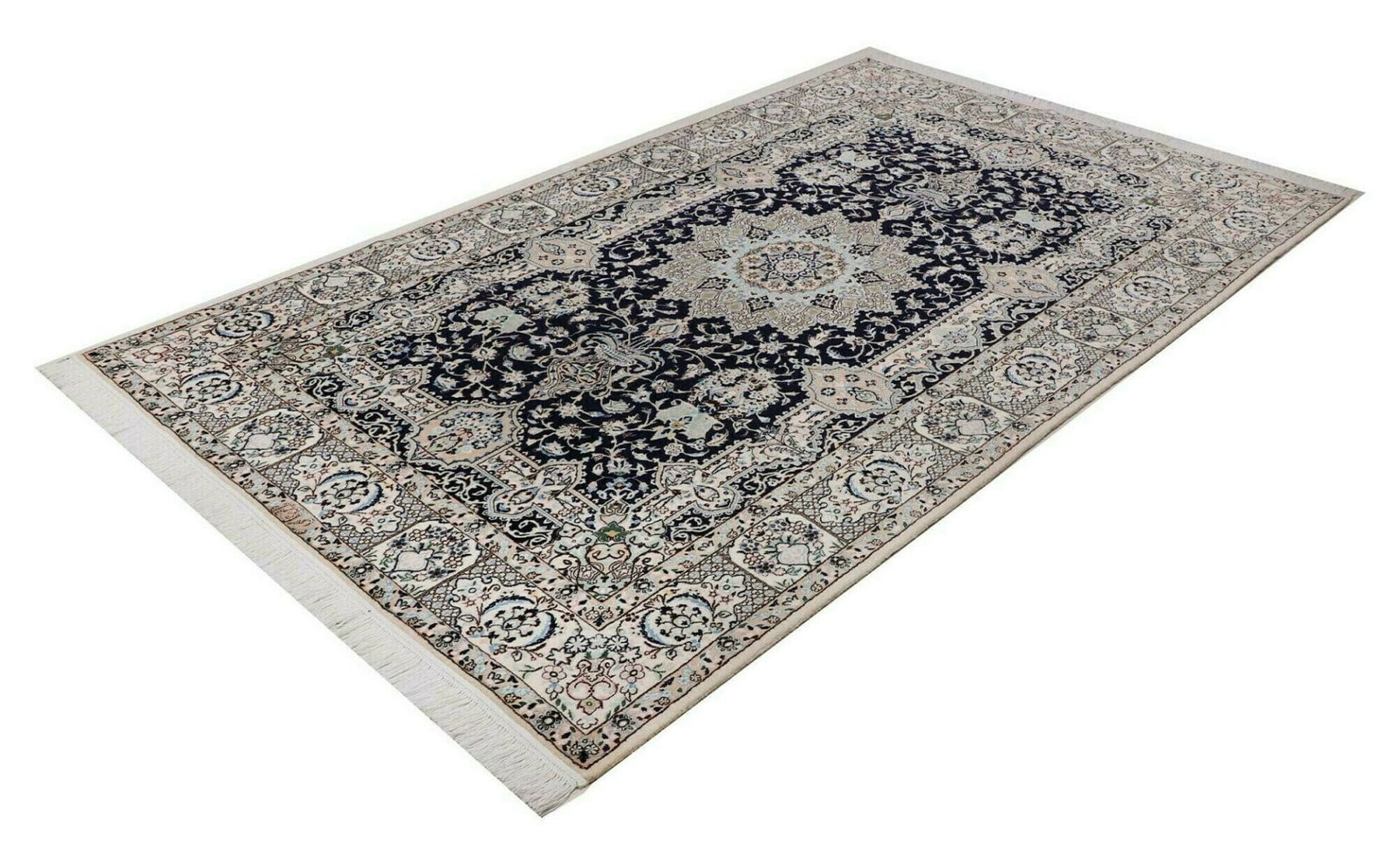 Nain Teppich | Knotendichte: ca. 900.000 Knoten/m² | Material: 100% Schurwolle (Flor), 100% Baumwolle (Kette) | Größe: 157×256 cm | Herkunft: Iran | Verarbeitung: Handgeknüpft | Zustand: Exklusiv und hochwertig | Muster: Traditionelle florale Motive mit königsblauem Akzent