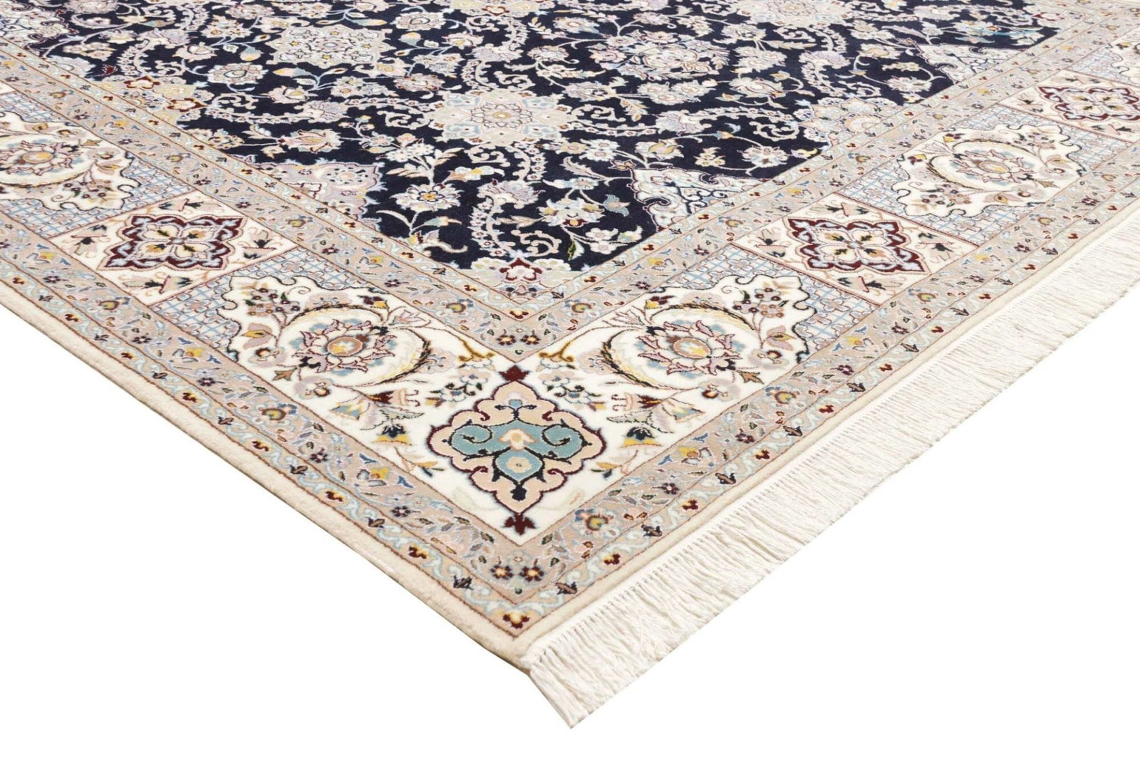 In dieser Region ist das Teppichknüpfen nicht nur Handwerk, sondern auch eine Kunstform, die über Generationen weitergegeben wird. Die Knüpferinnen und Knüpfer in Nain sind bekannt für ihre präzisen Techniken und ihr tiefes Verständnis für Farben und Muster. Die floralen Motive des Nain 6La spiegeln die Schönheit der Natur wider und sind in der persischen Kultur stark verwurzelt, wo sie oft als Symbol für Fruchtbarkeit und Wohlstand angesehen werden.