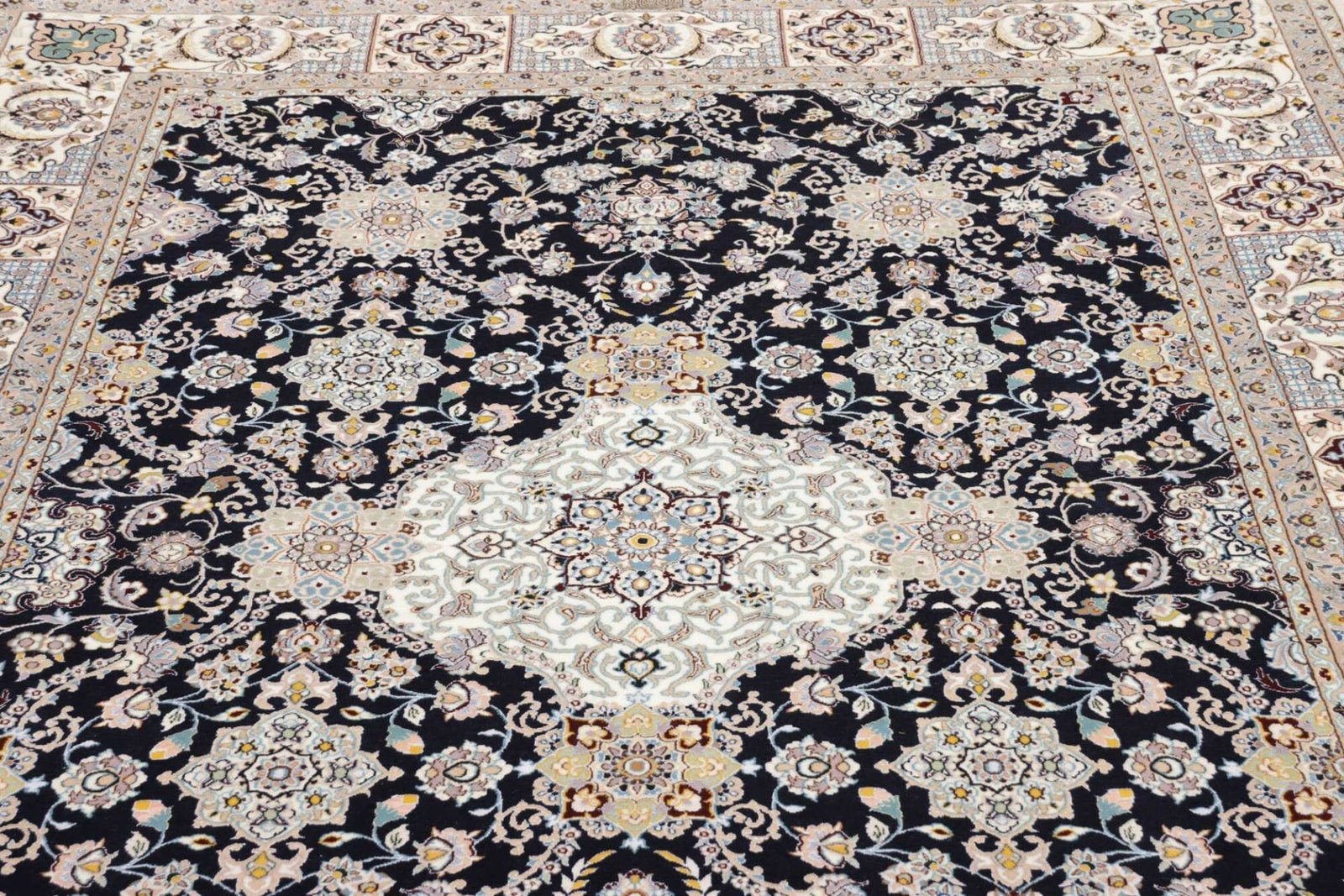 5266$Ursprünglicher Preis war: 5266$1156$Aktueller Preis ist: 1156$ Weiterlesen(Verkauft) W1 (#203) ca. 345x245cm NEU Handgeknüpfter Nain Perserteppich mit Seide 12la