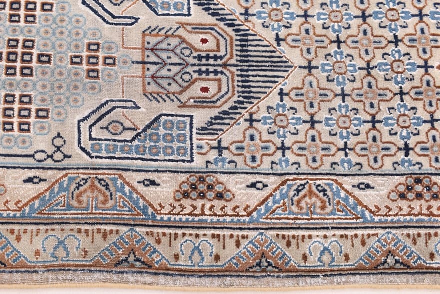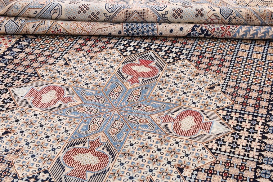 Die Designs der Nain-Teppiche sind oft inspiriert von klassischer persischer Kunst und beinhalten häufig florale und geometrische Muster. Diese Muster haben nicht nur eine ästhetische Funktion, sondern tragen auch tiefere symbolische Bedeutungen, die mit der iranischen Kultur verwoben sind.