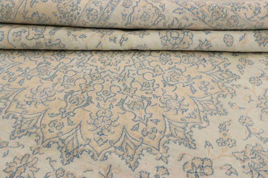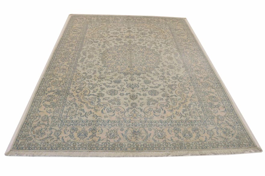 Nain 9 La Teppich | Knotendichte: 440.000 – 490.000 Knoten/m² | Material: Hochwertige Wolle | Größe: 345×248 cm | In neuem Zustand | Herkunft: Iran/Persien | Farbe: Weiß/Beige | Verarbeitung: Handgeknüpft | Dicke: ca. 10 mm | Gewicht: ca. 30 kg