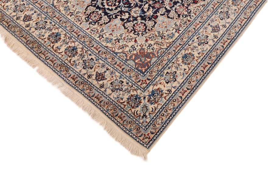 Handgeknüpfter Nain 9La Teppich | Knotendichte: über 400.000 Knoten/m² | Material: Wolle und Seide | Größe: 279×168 cm | Farbe: Blau/Türkis | Zustand: Neuzeitlich (0-20 Jahre) | Ursprung: Iran / Persien | Dicke: ca. 8 mm | Gewicht: ca. 12 kg