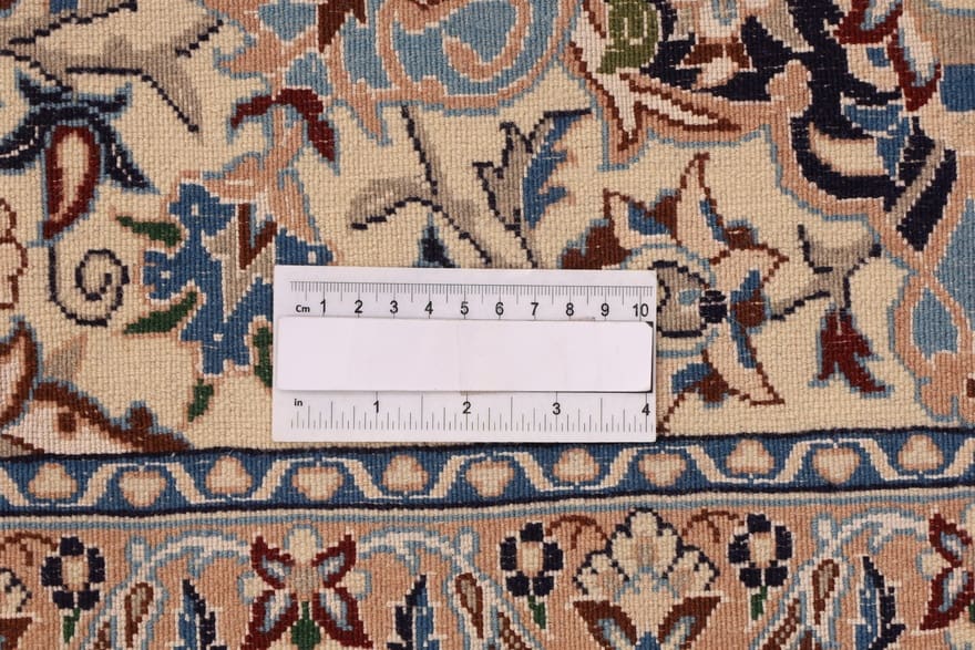 Ein besonderes Merkmal des Nain 9La Seidenteppichs ist seine Handgeknüpfte Qualität und die hohe Knotendichte. Dies sorgt nicht nur für außergewöhnliche Langlebigkeit, sondern verleiht dem Teppich auch eine unvergleichliche Wärme und Gemütlichkeit. Die außergewöhnliche Fähigkeit, Licht und Schatten einzufangen, lässt die Farben lebendig erscheinen und hebt die Schönheit des Teppichs bei verschiedenen Lichtverhältnissen hervor.
