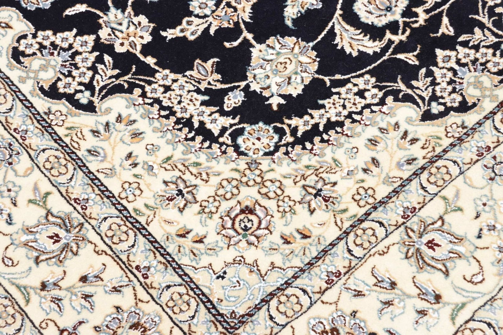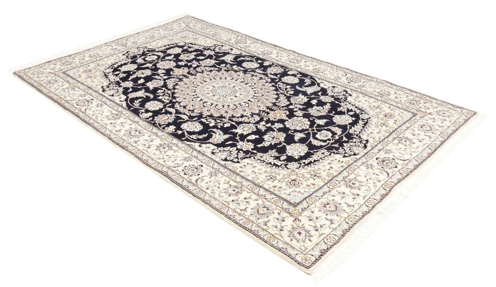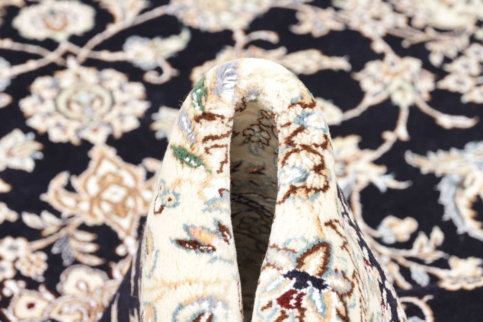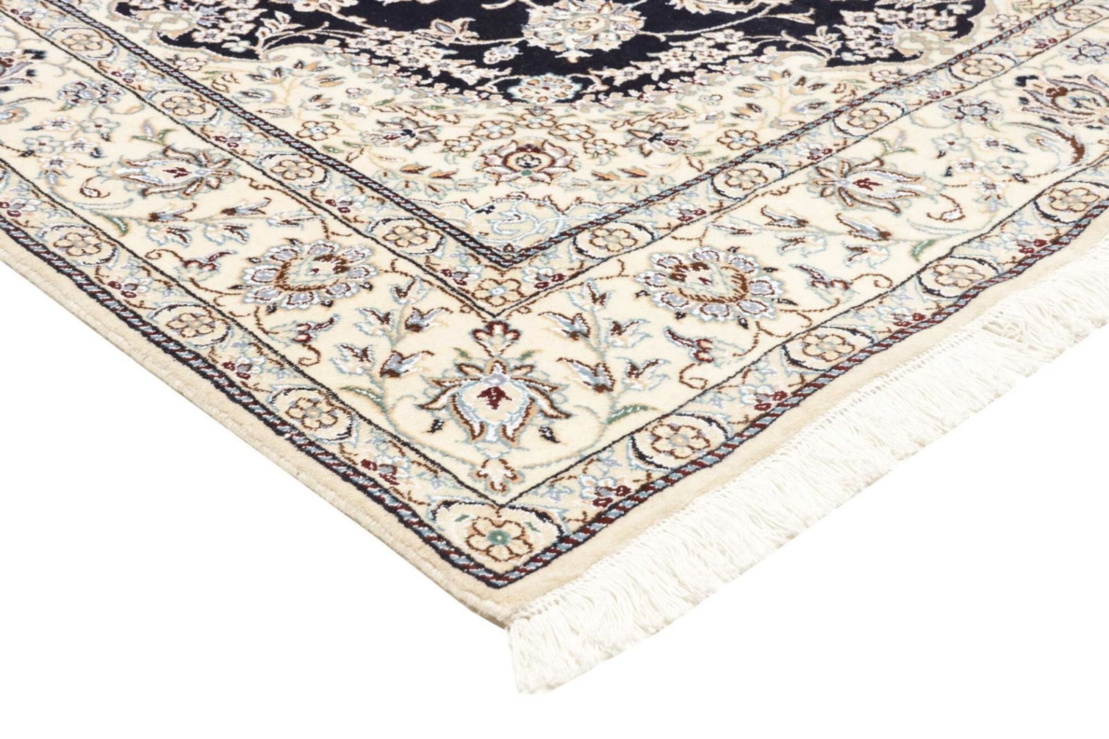 Das florale Muster des Nain Orientteppichs wird durch seine harmonischen Farben und die geschickte Anordnung der Elemente unterstrichen. Diese Teppiche sind häufig in eleganten Blautönen, warmen Erdtönen und sanften Creme-Farben gestaltet. Das florale Design ist nicht nur zeitlos, sondern lässt sich auch nahtlos in verschiedene Einrichtungsstile integrieren – von klassisch bis modern.