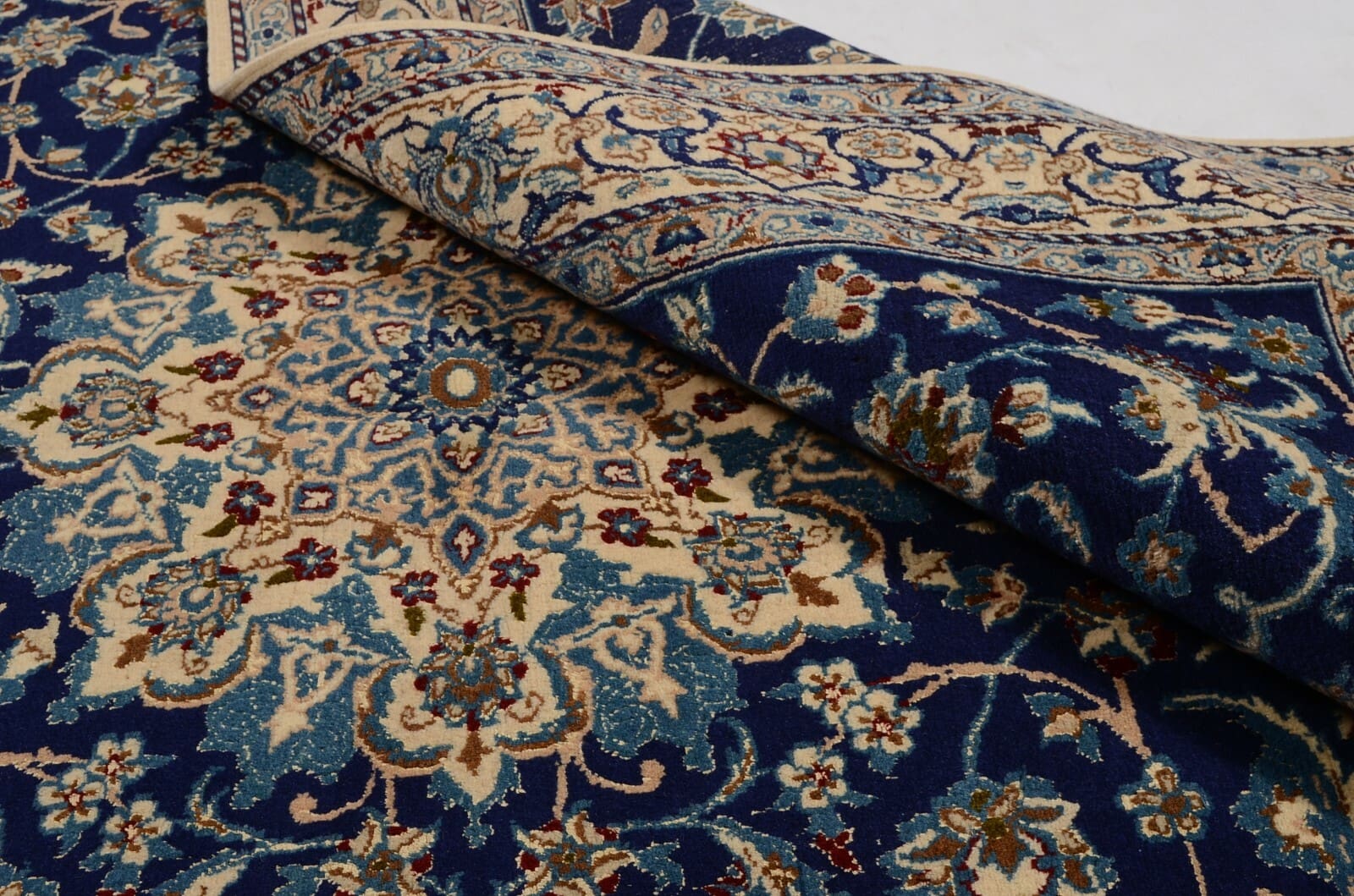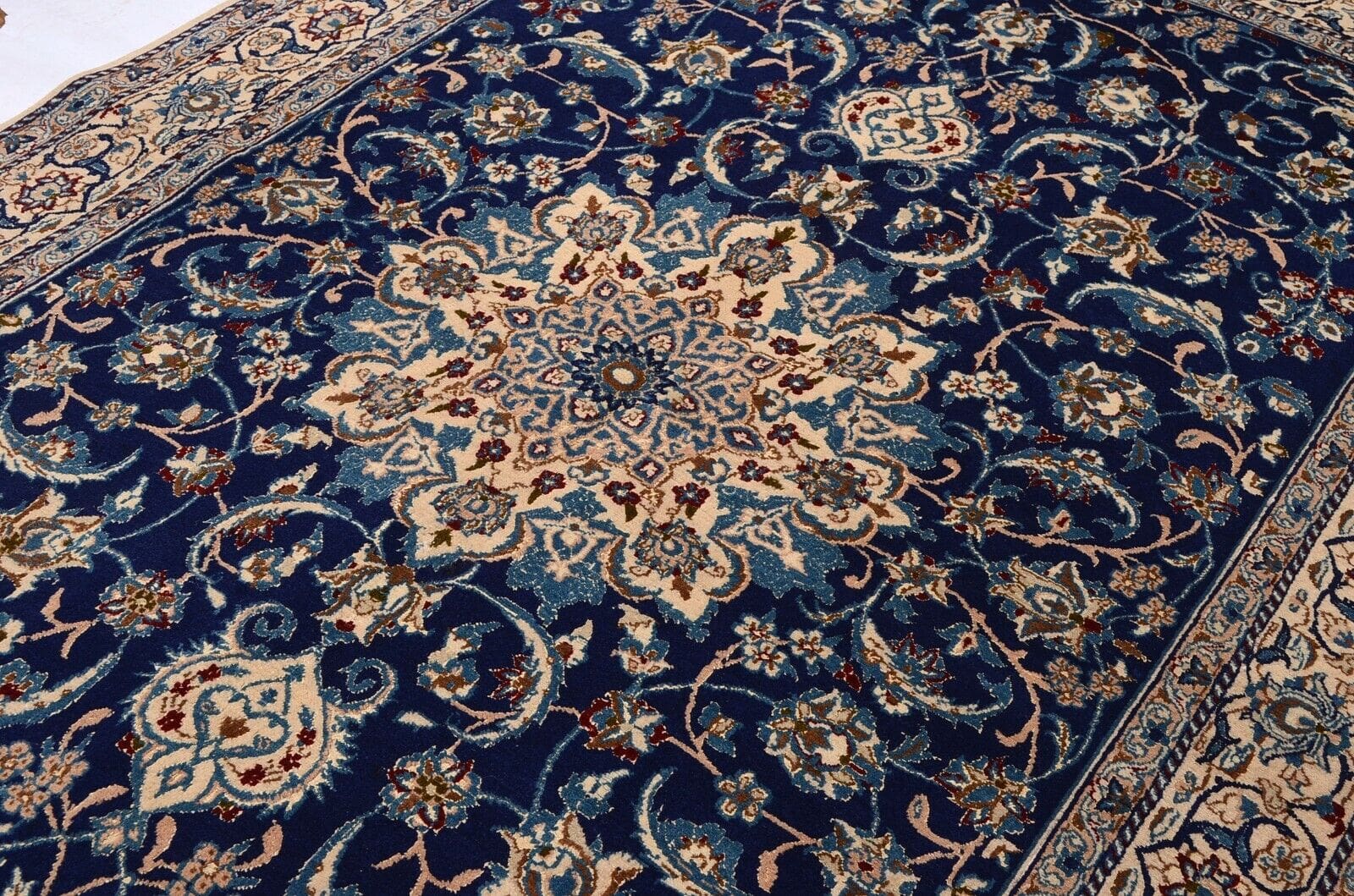 Die Teppichweber von Nain haben über Jahrhunderte ihr Handwerk perfektioniert. Oft werden traditionelle Muster verwendet, die von der persischen Kunst und Architektur inspiriert sind. Die Region ist bekannt für ihre zarten, eleganten Designs, die oft florale und geometrische Elemente kombinieren. Dies spiegelt sich auch in den Farben wider, die von sanften Blautönen bis zu reichen Rottönen reichen und idealerweise in jedes moderne oder klassische Interieur integriert werden können.