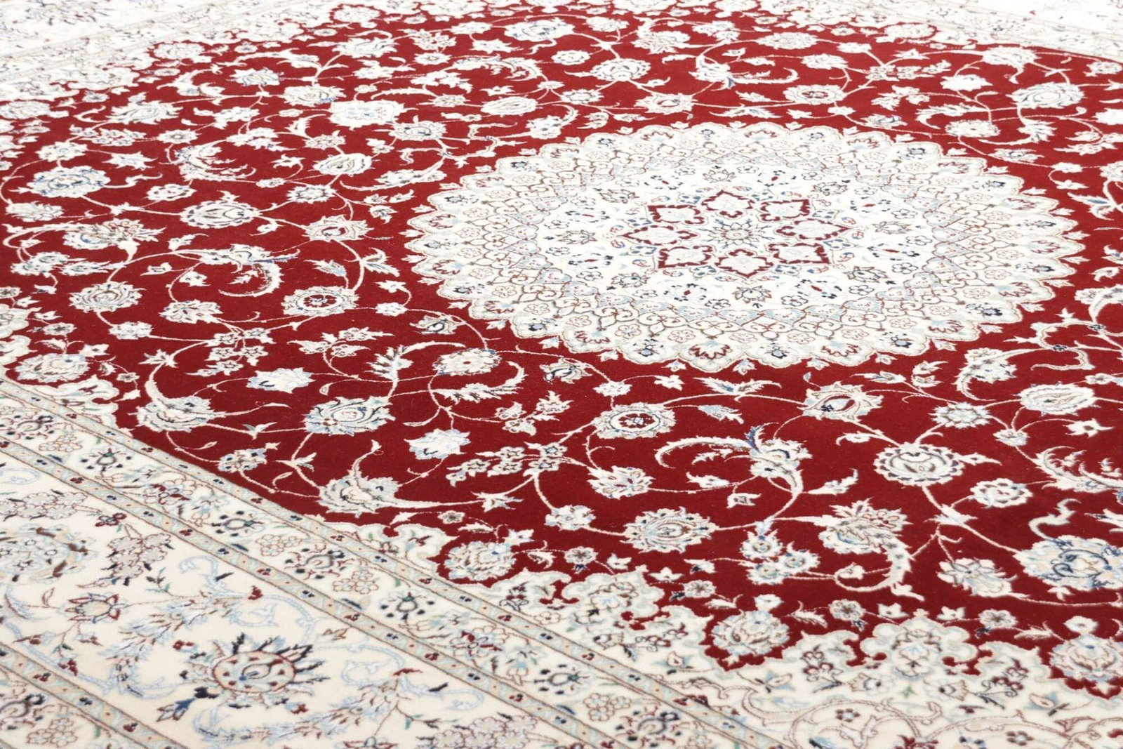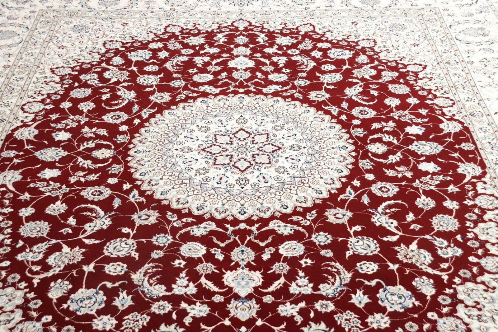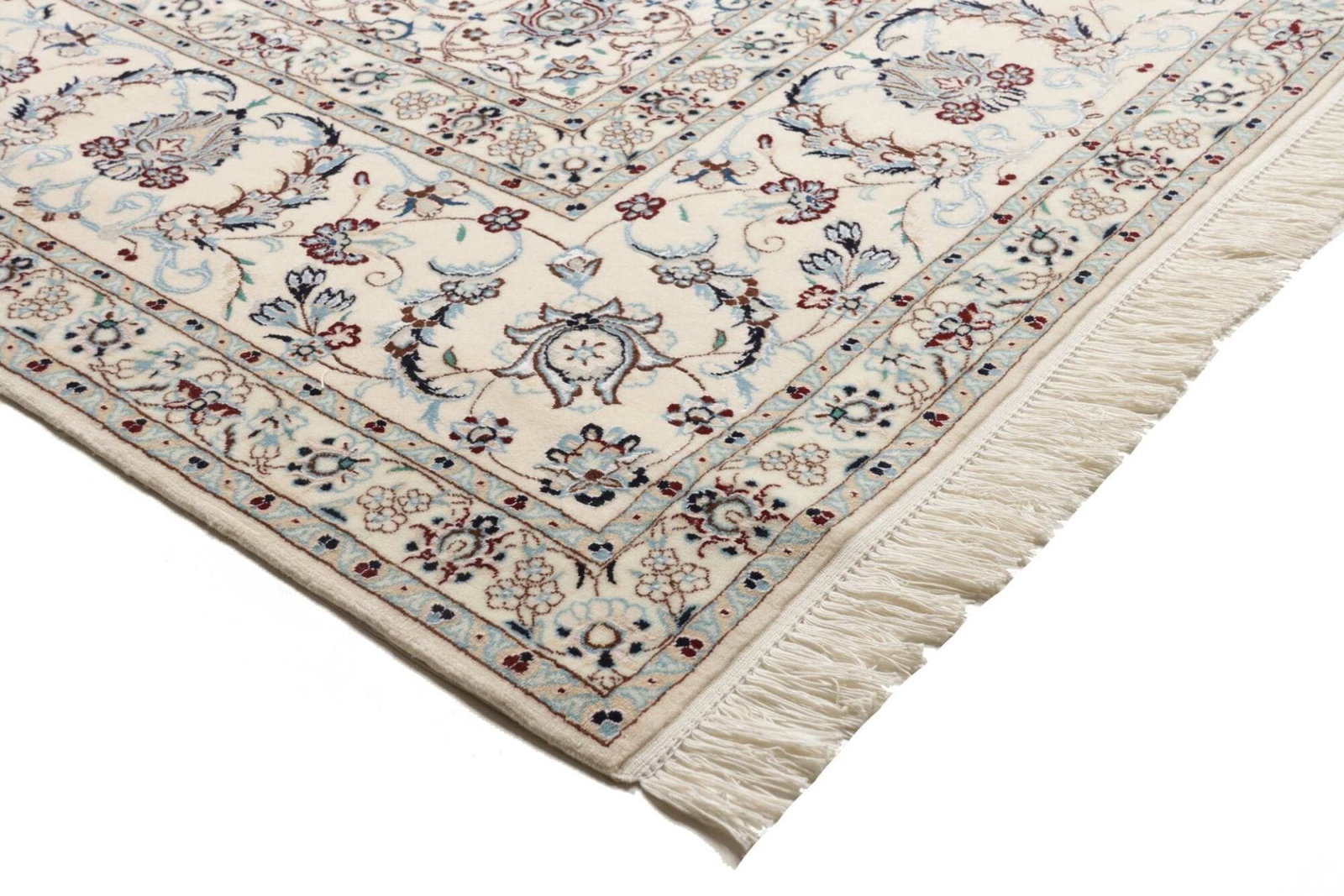 15389$Ursprünglicher Preis war: 15389$12387$Aktueller Preis ist: 12387$Nain Teppich | Knotendichte: ca. 900.000 Knoten/m² | Muster: Klassische florale Motive | Größe: 254 x 301 cm | Material: 100% Schurwolle (Flor) und 100% Baumwolle (Kette) | Zustand: Sehr gut | Ursprung: Iran | Verarbeitung: Handgeknüpft